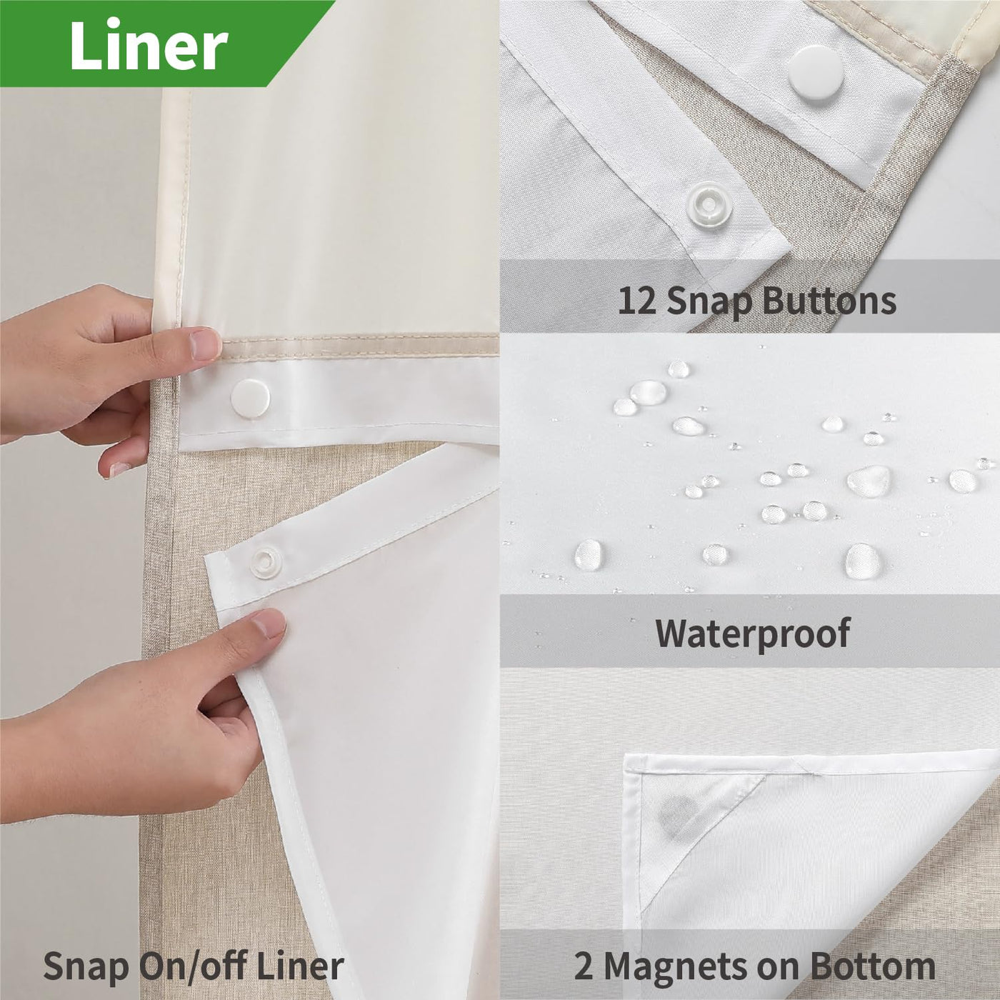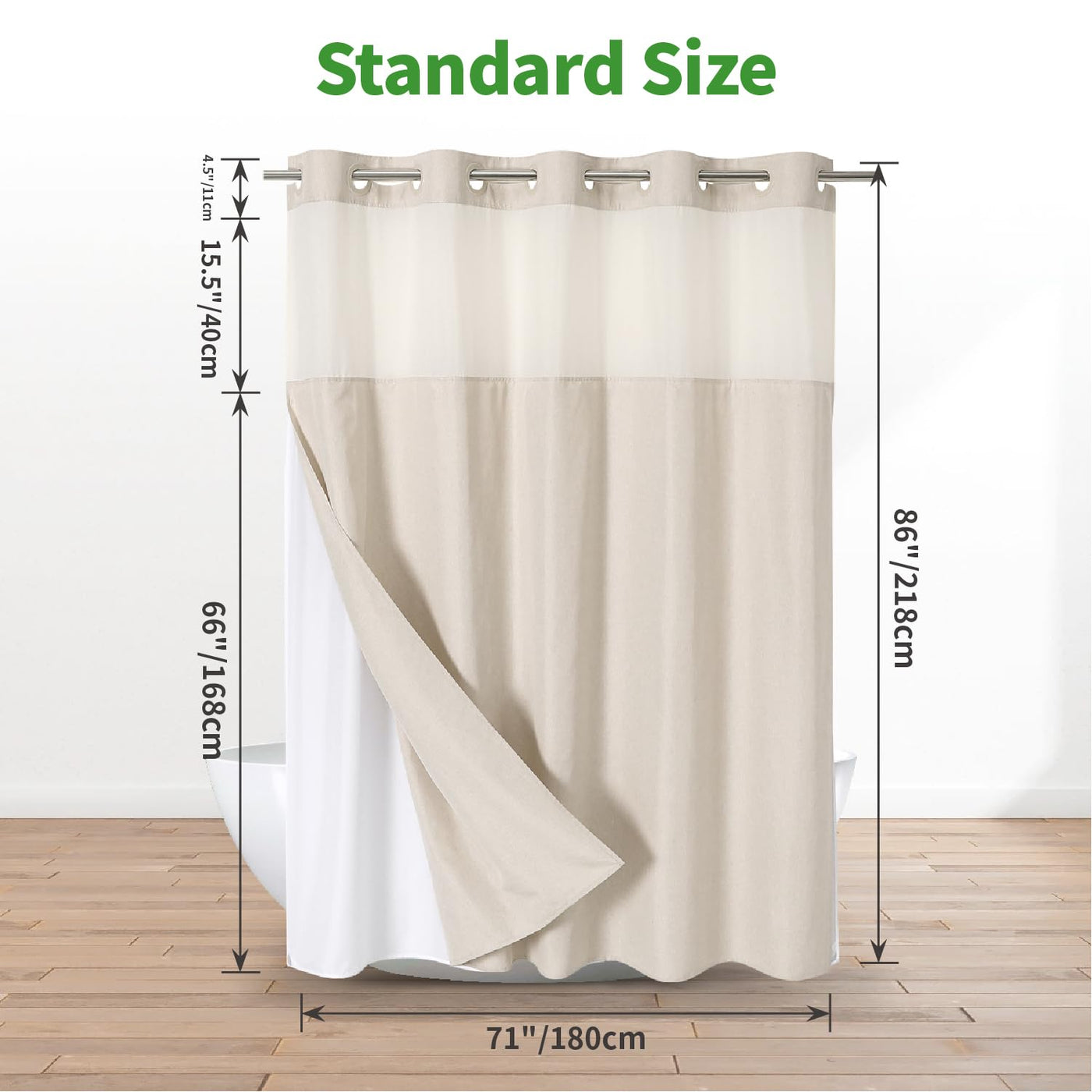 Eachope Extra Long No Hooks Needed Linen Textured Shower Curtain With Snap-In Fabric Liner Set,Cream Hotel Luxury Decor Shower C