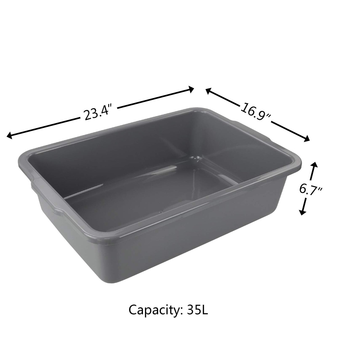 Eagrye 4-Pack Large Bus Tubs, Commercial Tote Box, Plastic Bus Box, 32 L, Grey