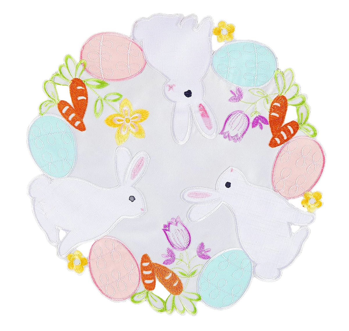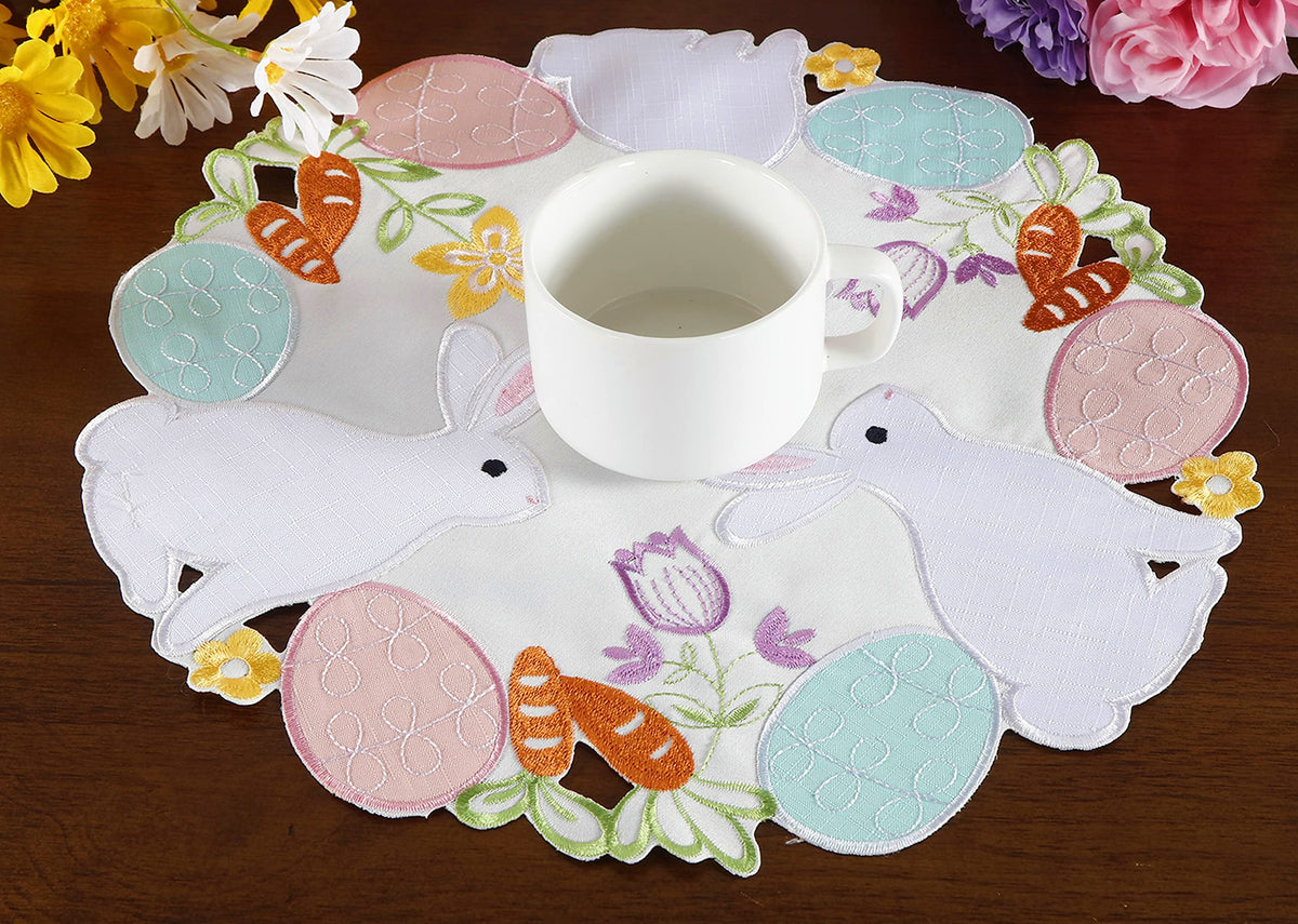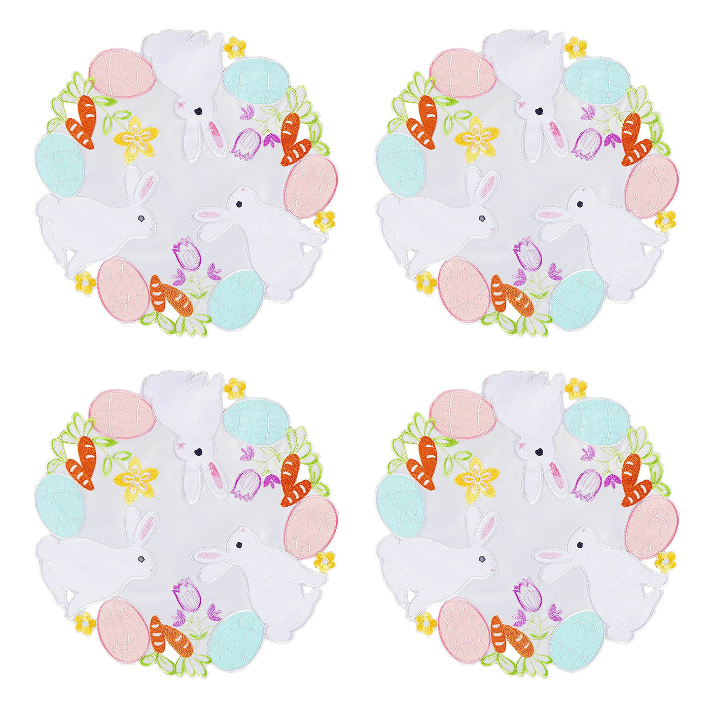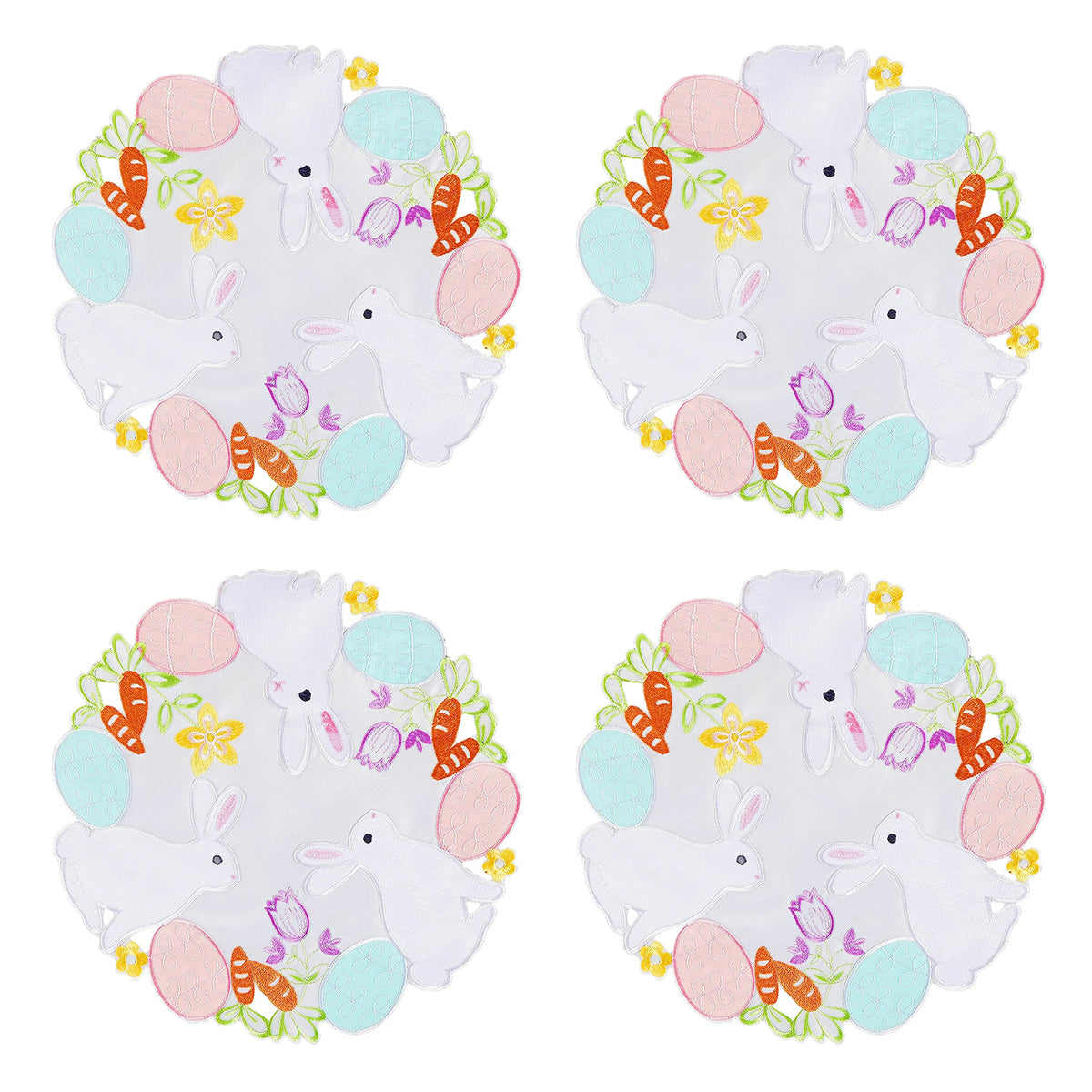 Easter Bunnys Placemats Set Of 4, Cutwork Embroidered Floral And Bunnys Dresser Scarf Table Topper,Home Kitchen Dining Tabletop