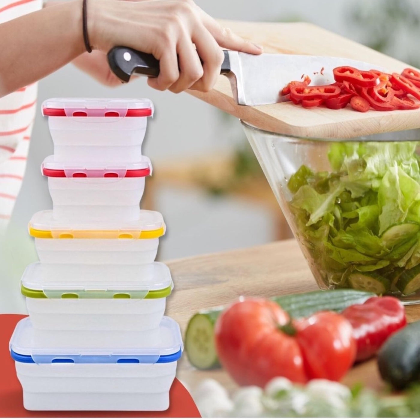 Ecoberi Collapsible Silicone Food Storage Containers - Airtight Snap-Top Lids, Bpa Free, Microwave And Dishwasher Safe, Set Of 5