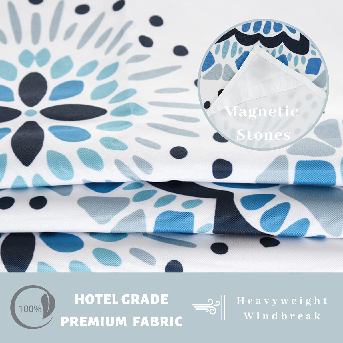 Ecoehoe 71'' W X74 H Hotel Grade Fabric Hook Free Shower Curtain With Replacement Magnets Liner White&Blue Boho Style -100% Wate