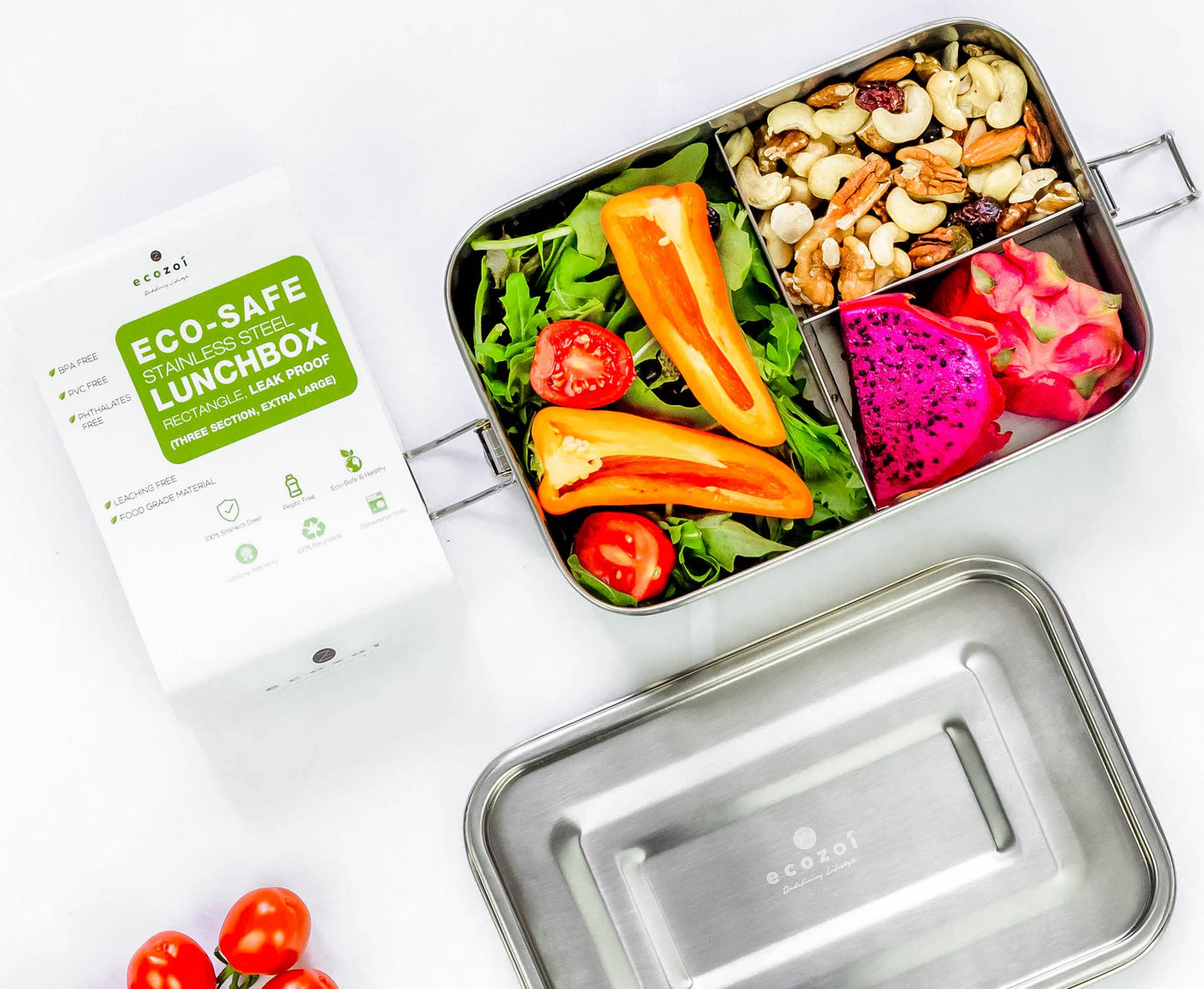 • Q: Is the Ecozoi Stainless Steel Lunch Box truly leak-proof? A: Yes, the Ecozoi Stainless Steel Lunch Box is designed to be leak-proof, thanks to its redesigned silicone seal. However, please note that internal compartments are not leak-proof.