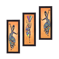 Ecraftindia Abstract Dancing Lady Uv Art Painting (Synthetic Wood, 53 Cm X 41 Cm, Set Of 3, Satin Matt Texture, C3Fpb2190)