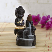 Package Content - One Meditating Monk Buddha Smoke Fountain with 10 Backflow Cone Decorative Incense Holder
