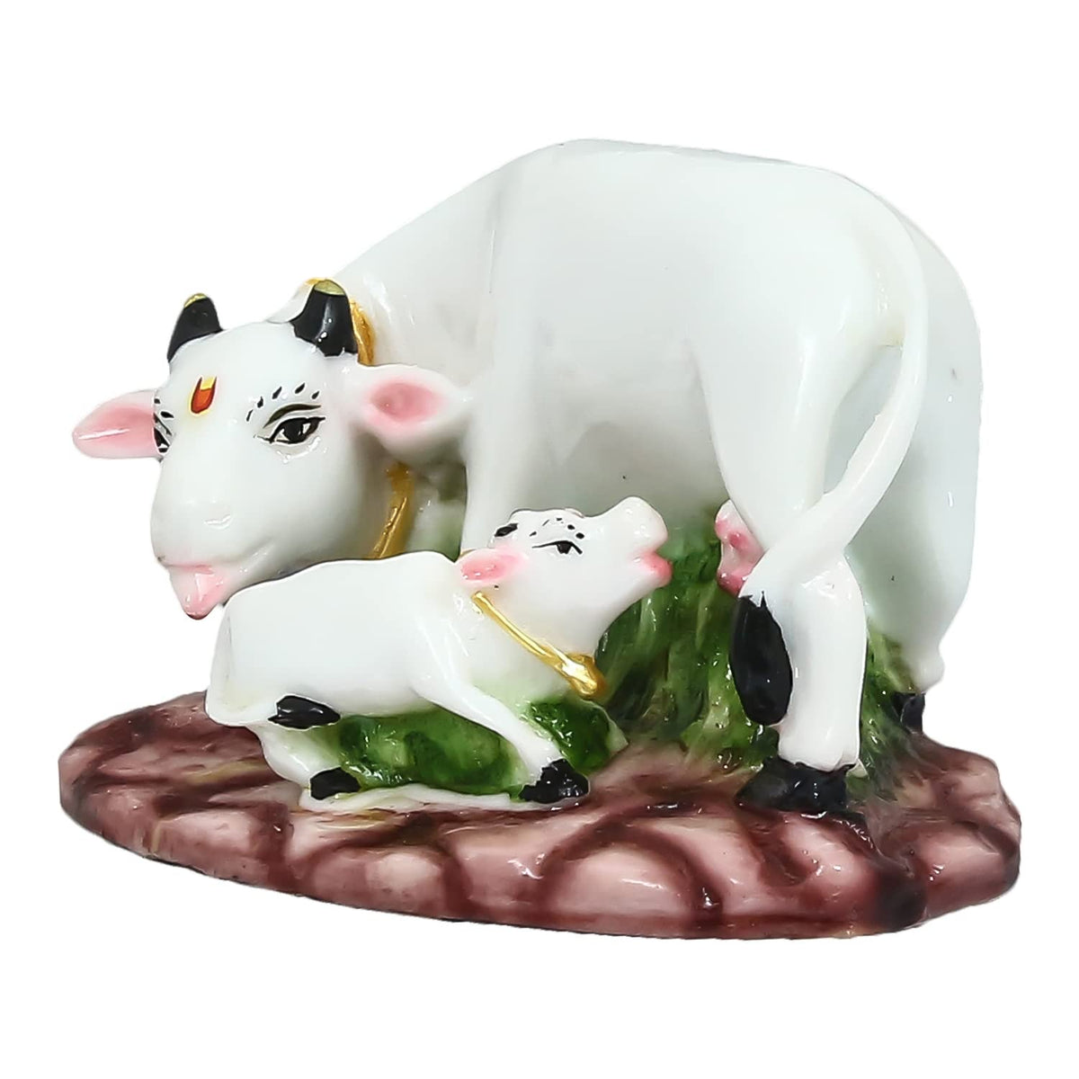 Ecraftindia Colorful Cow And Calf Statue Polyresin Statue (12.5 Cm X 7.5 Cm X 7.5 Cm, White And Green)