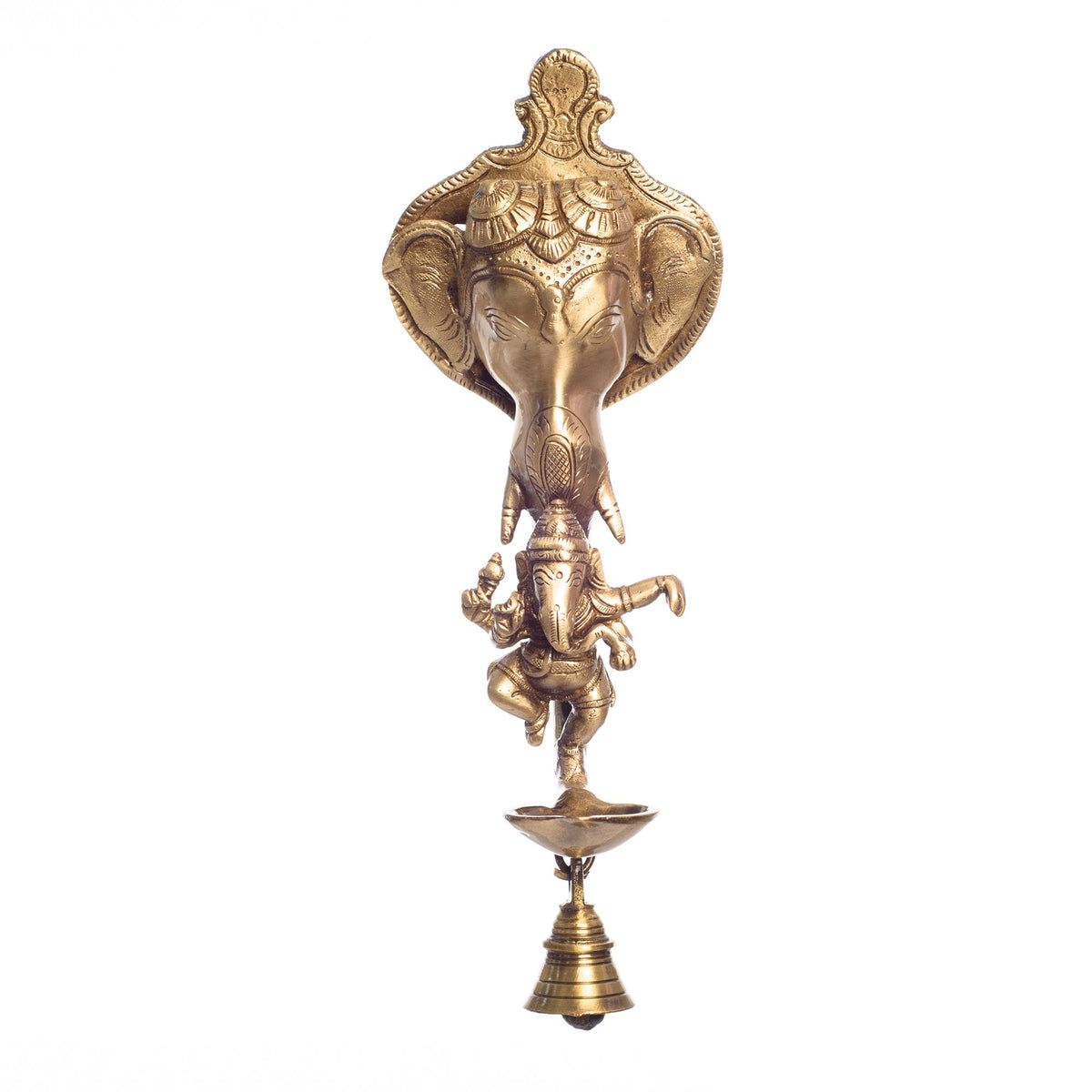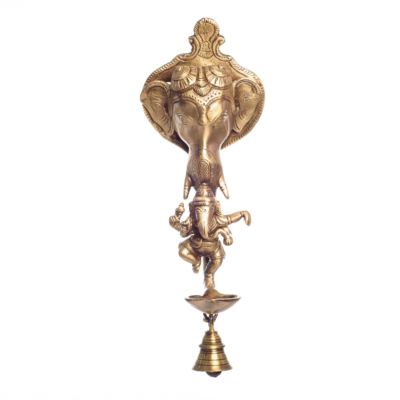 Ecraftindia Dancing Ganesha Brass Religious Wall Hanging Deepak With Bell (10 Cm X 7 Cm X 25, Brown And Golden), Standard
