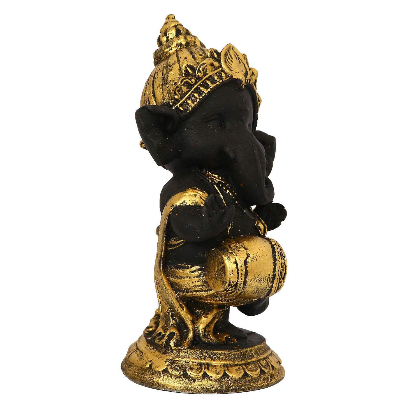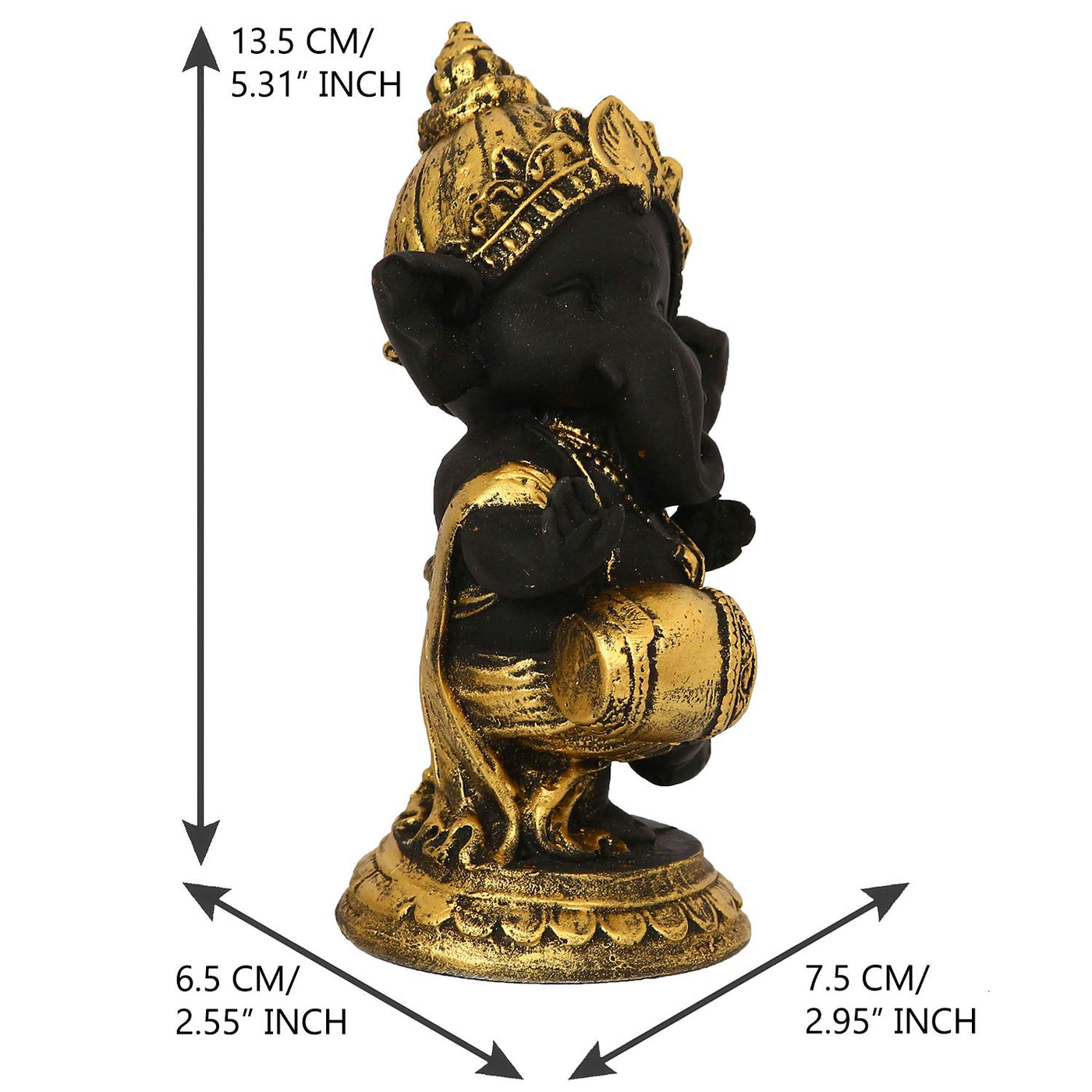 Ecraftindia Golden And Black Polyresin Lord Ganesha Idol Playing Dholak Musical Instrument Decorative Showpiece Ideal For Home,