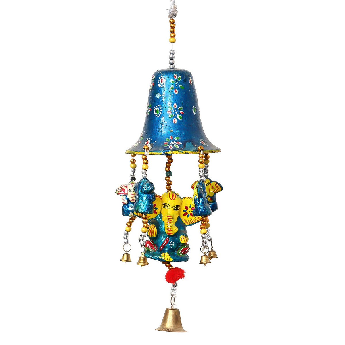 eCraftIndia presents decorative wall/door hanging bells which is widely used in worldwide to hang across doors, walls and windows. It is a traditional item made up of fabric, wood, metal bells and artificial pearls. Each bell is of different color and has been handcrafted and added to string with other props. This wall hanging gives a royal touch to your home and surprises your friends and guests with the artistic and embroidery work. Highlighting the fine and intricate detailing, this beautiful vintage art can be a surprise for your loved ones. It is also an ideal gift for your family and friends on various ocassions. A beautiful piece of true Indian art for living room is also a nice gift item for Indian art lovers. Each string wall hanging is diligently handcrafted by skilled artisans from the house of eCraftIndia using various traditional techniques.