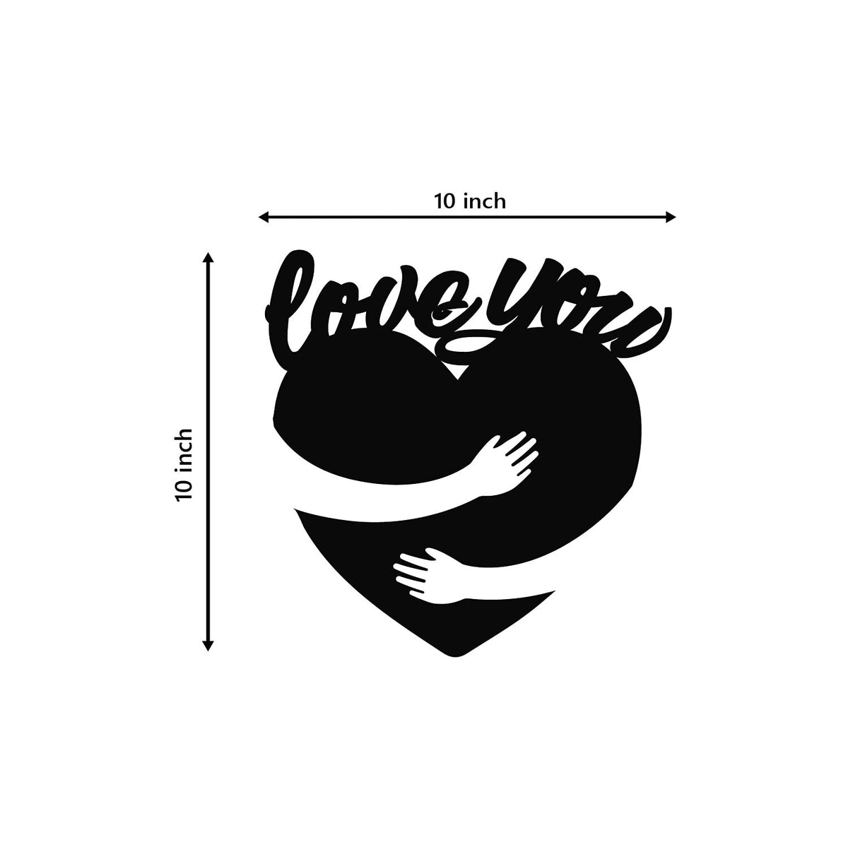 Ecraftindia Heart Hugging Love You Black Engineered Wood Cutout Wall Art Decor - Romantic Wall Hanging For Bedroom, Living Room