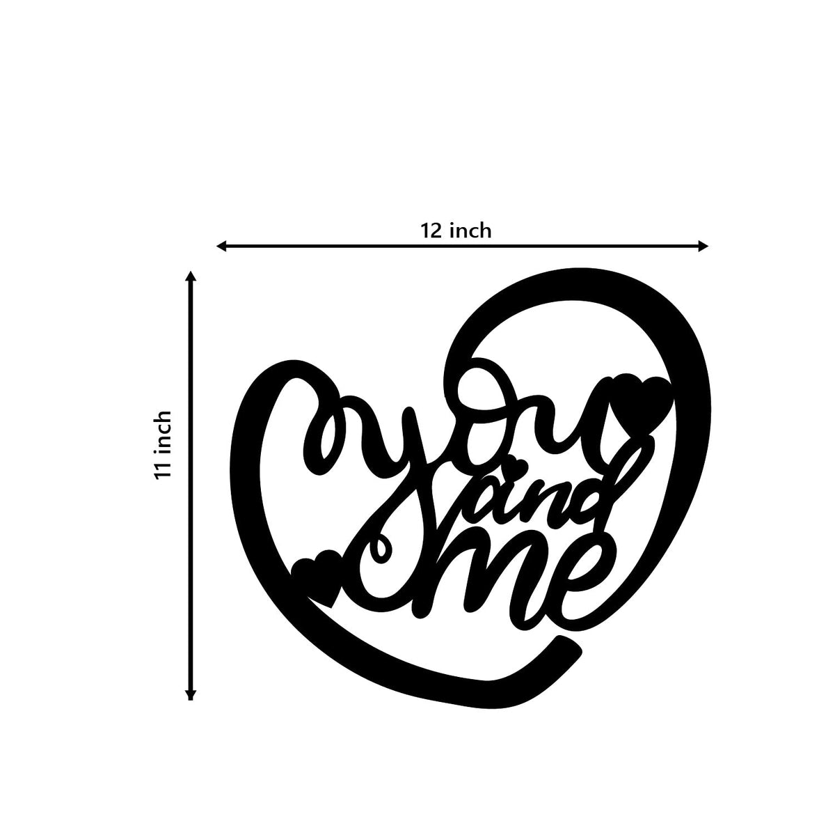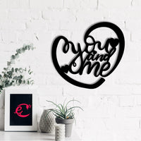 Ecraftindia Heart Shaped You And Me Love Quote Black Engineered Wood Cutout Wall Art Decor - Ideal Gift For Anniversary Or Weddi