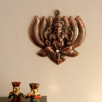 Ecraftindia Lord Ganesha On Lotus Metal Wall Hanging (33 Cm X 3 Cm X 32 Cm, Brown)