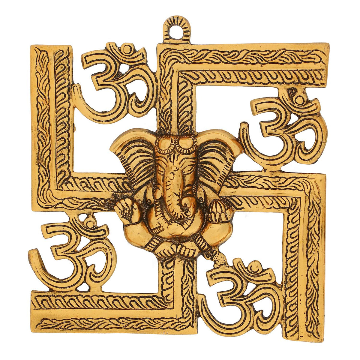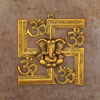 Ecraftindia Lord Ganesha On Om Swastik Metal Golden Wall Hanging
