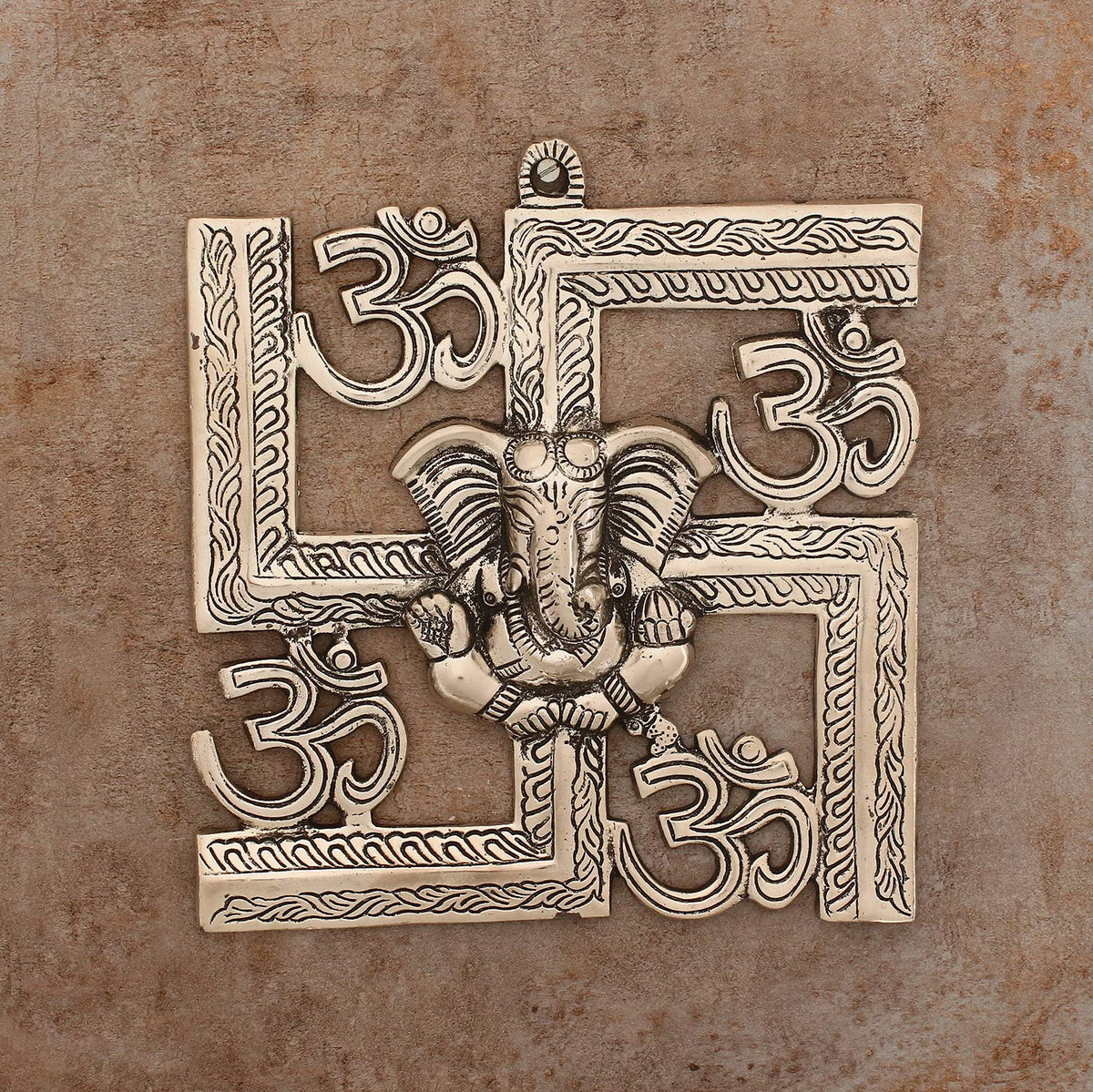 Beautiful Wall Hanging Of Lord Ganesha On Om Swastik From Ecraftindia Will Definitely Bring In A Divine Serenity To Your Home Decor. It Is Crafted From Metal Which Ensures And Ethnic Look As Well As Durability. This Art Piece Is Surely Grab Attention In Your Living Room. It Serves As A Great Gift, Especially Around Religious Celebrations And Festivities. Each Wall Hanging Is Diligently Handcrafted By Skilled Artisans From The House Of Ecraftindia Using Various Traditional Technique.