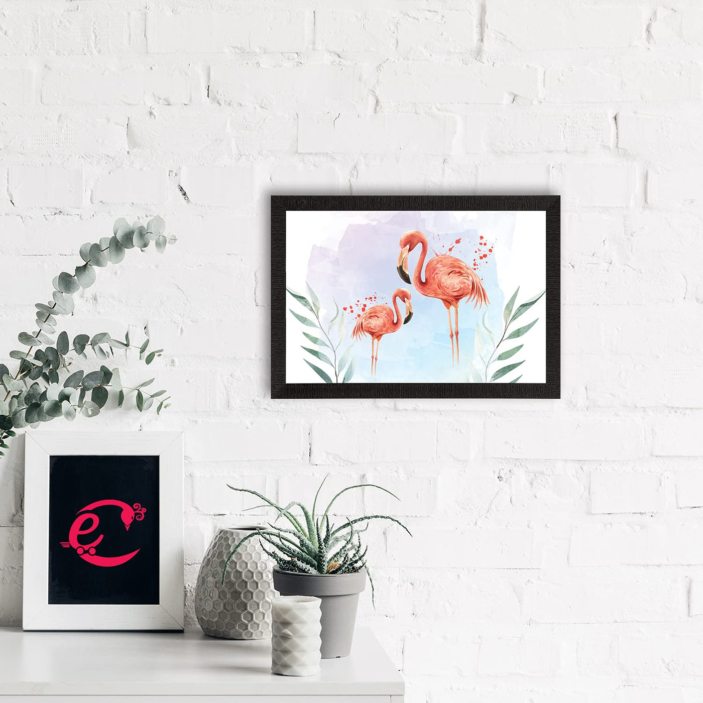 Decorate your home & office walls with this artistic design eCraftIndia Pink Flamingo Satin Matt Texture UV Art Painting. Each design reflects the artistic qualities and time one has taken to design this painting. Exquisitely printed and framed, it is also a perfect gifting option for your colleagues, loved ones and family members. These frames dont include glass so it is very light weight and wet cloth can be used to clean it.