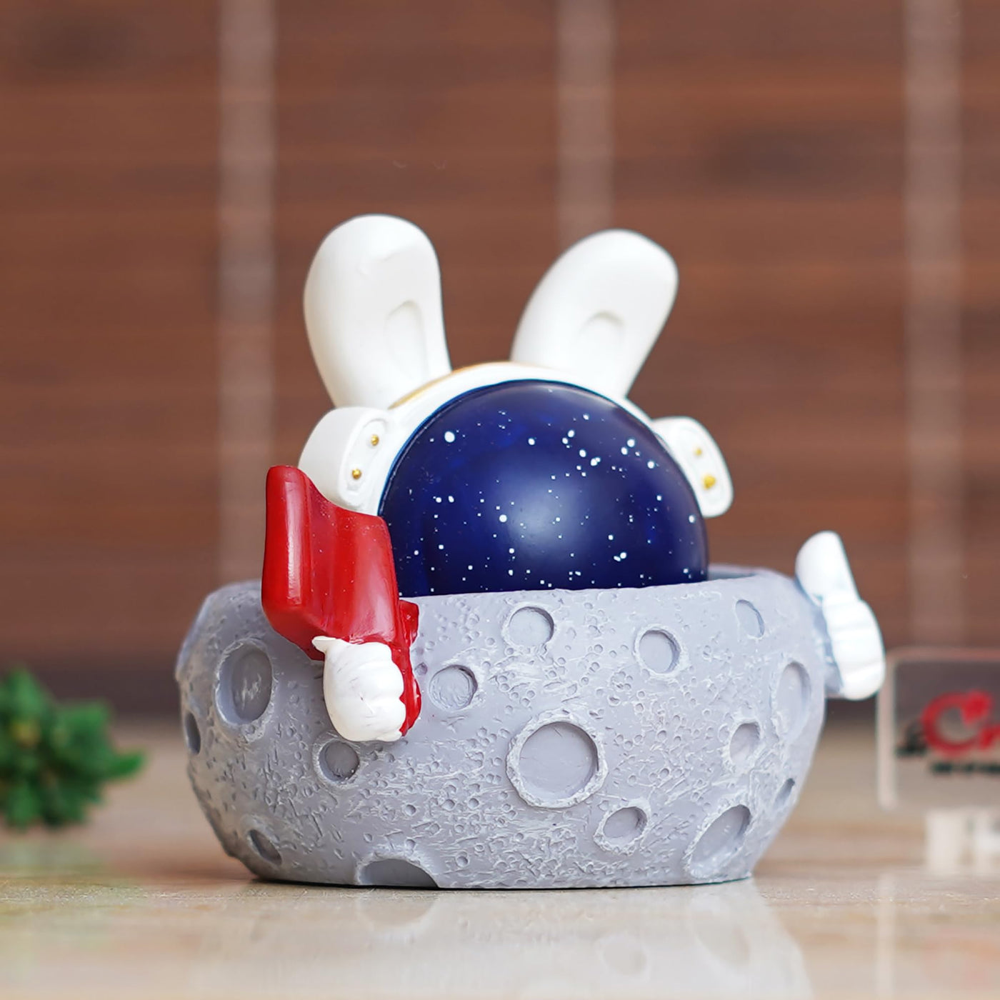 Ecraftindia Rabbit Astronaut Miniature Statue On Moon Shaking Head With Red Flag Decorative Showpiece For Home Decor Living Room Bedroom Tv Unit Office Desk Table Car Dashboard
