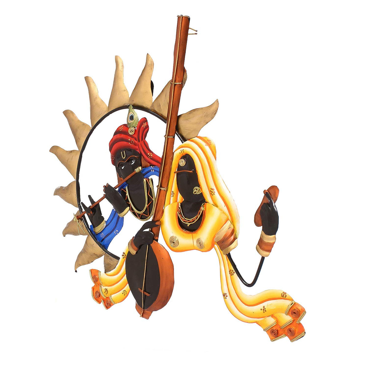 Package Content: One eCraftIndia Metal Handcrafted Radha Playing Veena and Krishna Playing Flute Religious Wall Hanging Decorative Showpiece