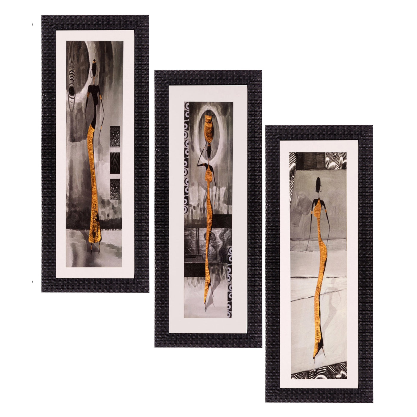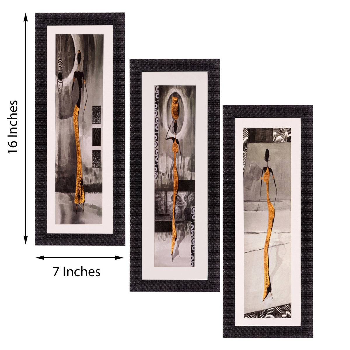 Ecraftindia Satin Matt Textured Synthetic Wood Art Painting (18 Cm X 41 Cm, Set Of 3, C3Fpb2107)