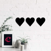 Ecraftindia Set Of 3 Hearts Black Engineered Wood Wall Art Cutout, Ready To Hang Home Decor, One Size (Wmdfco115)