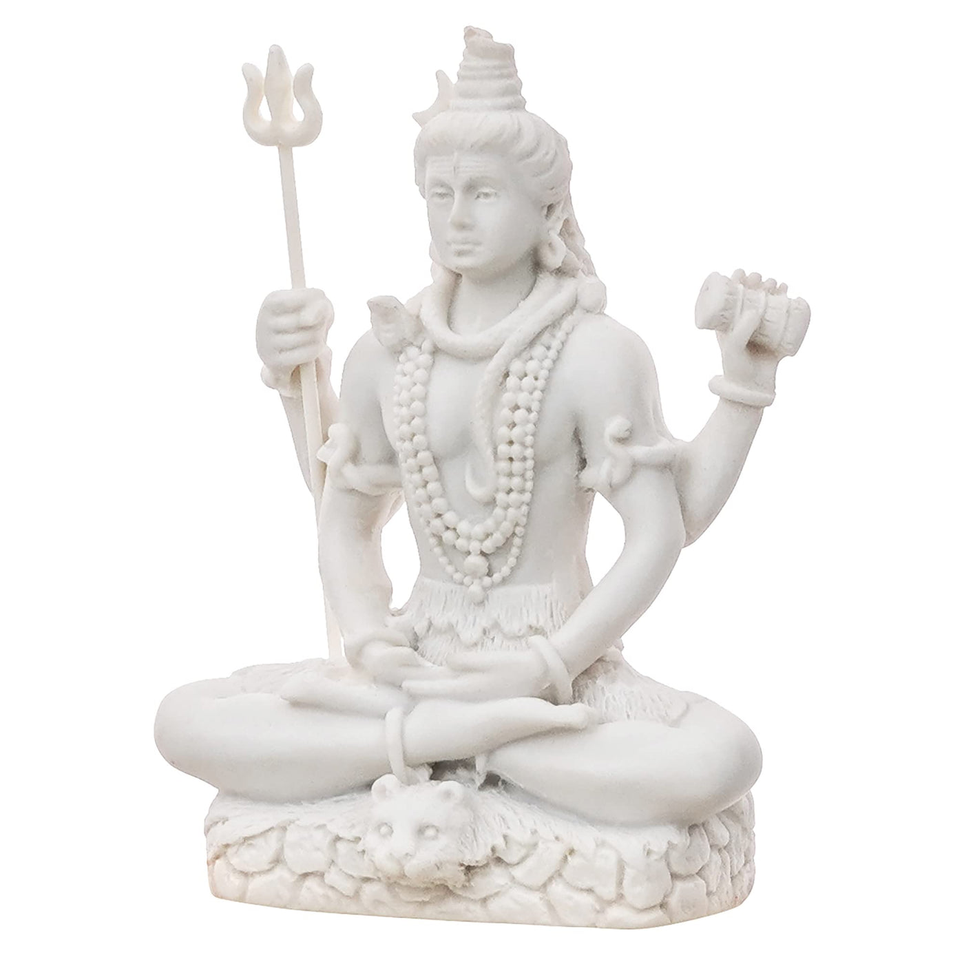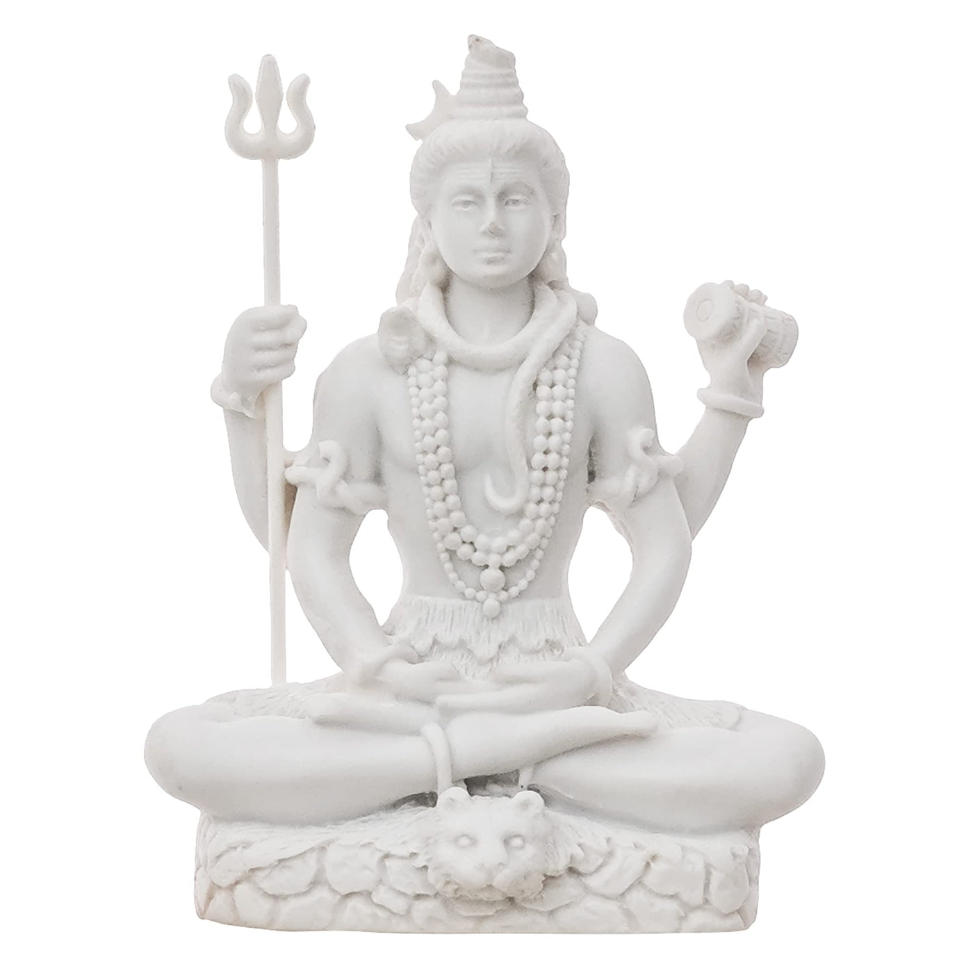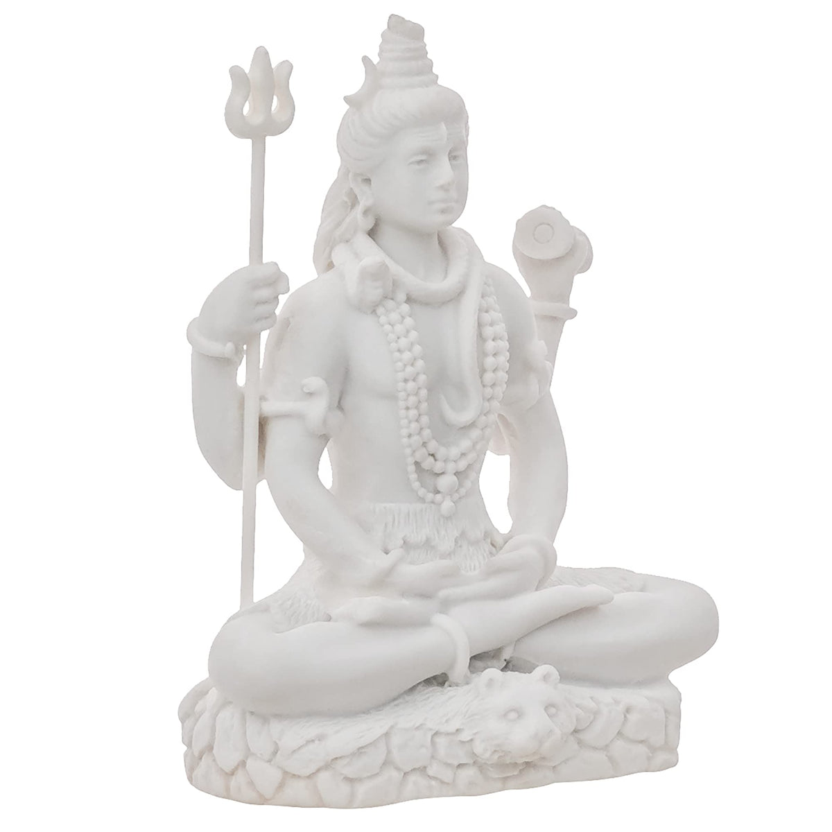 There is something extremely calm and serene about Lord Shiva in his meditative pose- when you see him sitting cross-legged on top of tiger skin, you get a sense of his power. This White polyresin Lord Shiva statue figurine has been handcrafted by local craftspeople and has intricate details carved in- right from the snake around his neck, to his Trishul with the damru and even his third eye! This is not only a good option for your home or office, you can even look at it as a gift for a friend or family member.