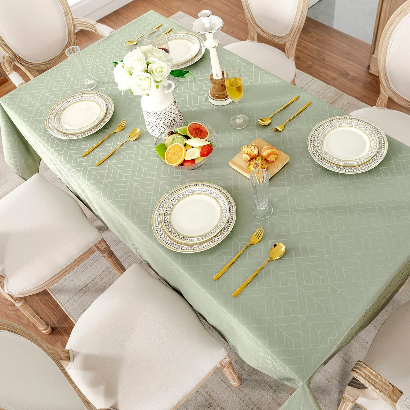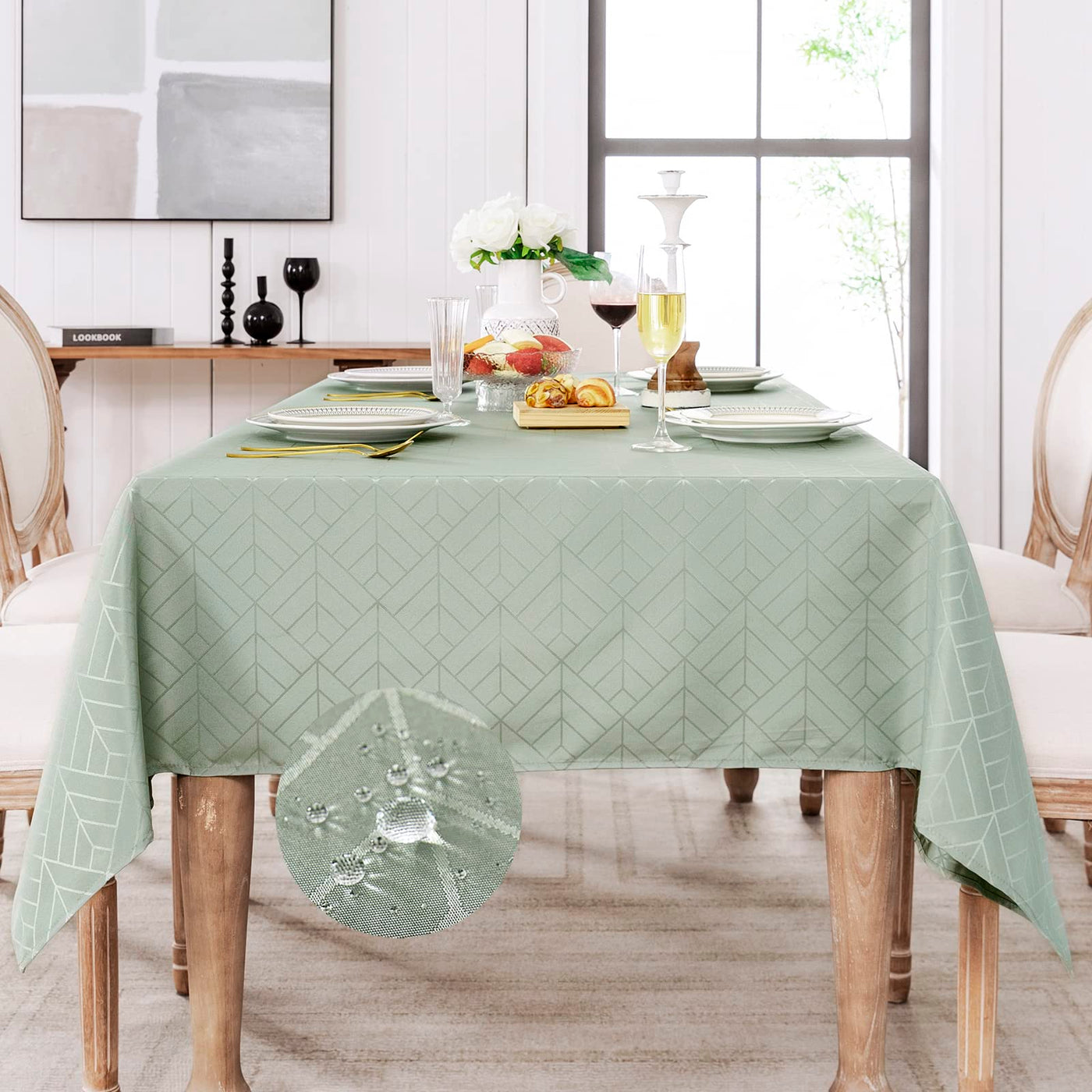 Efficinature Rectangle Tablecloths 60 X 84 Inch Waterproof Washable Sage Green Oblong Table Clothes For 6 Foot Tables Geometry S