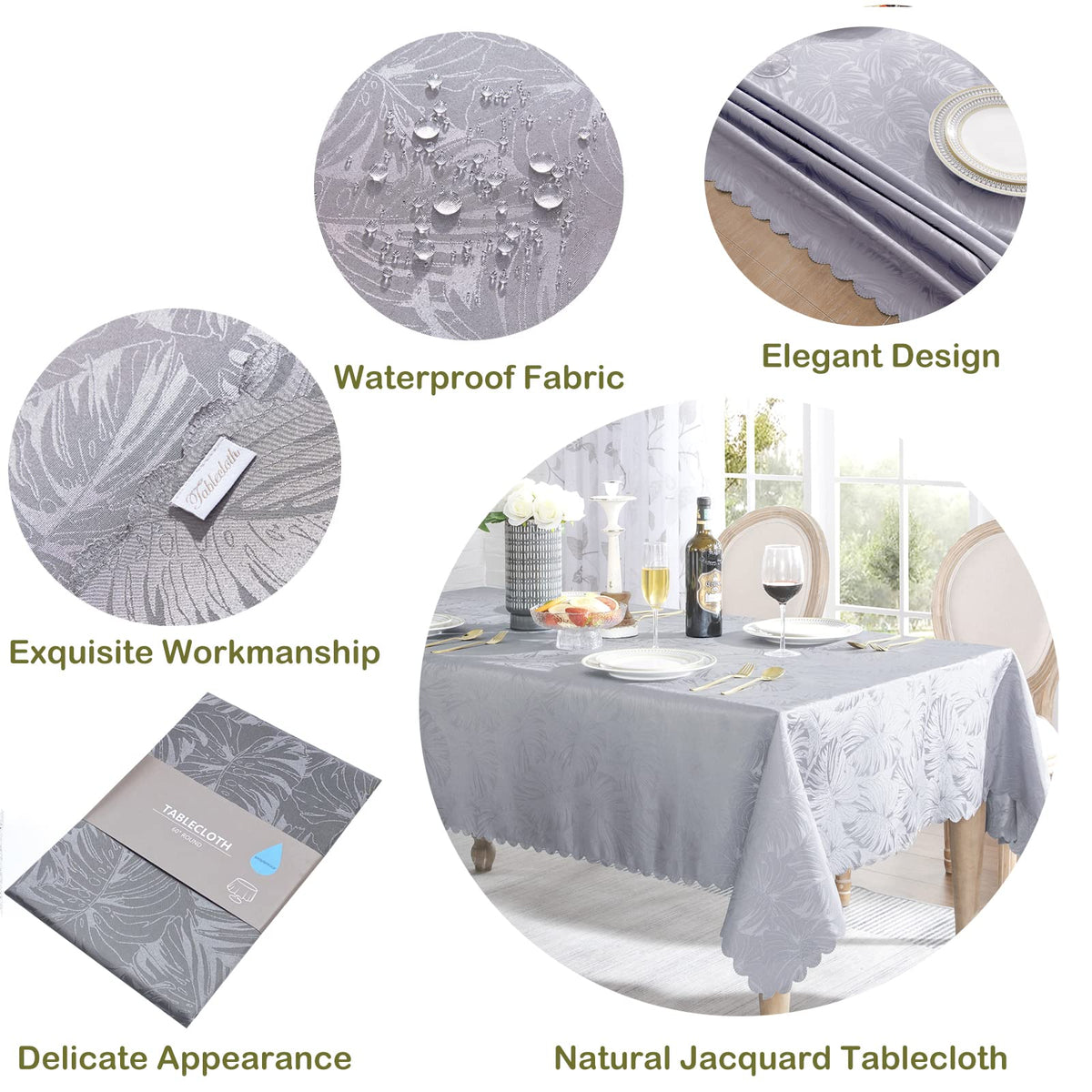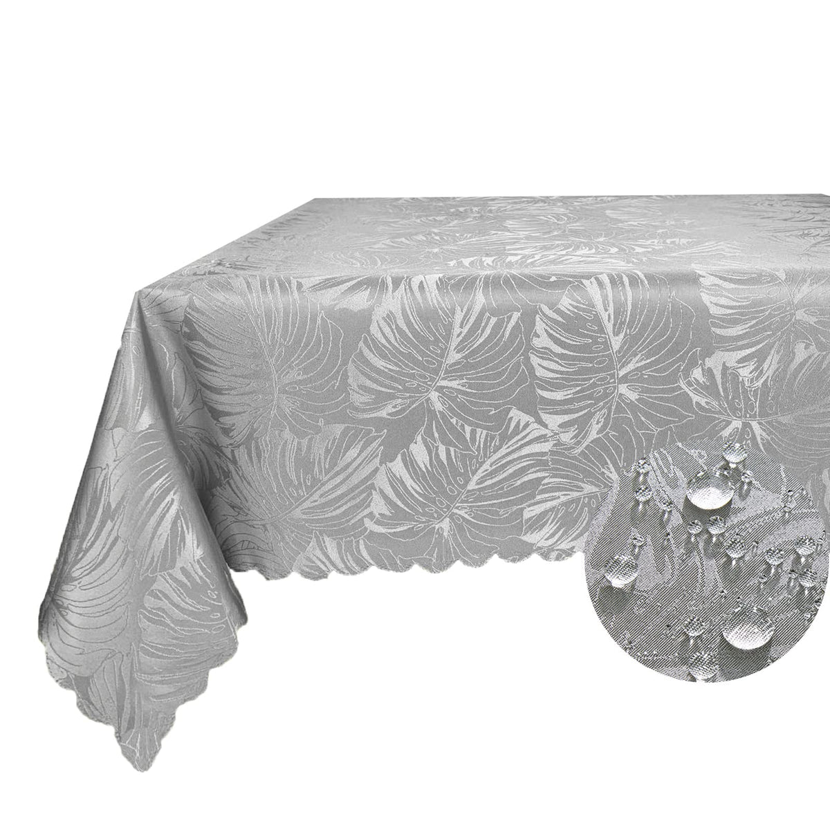 Efficinature Rectangle Tablecloths 60X102 Inch Waterproof Washable Grey Oblong Table Clothes For 6 Foot Tables Leave Pattern Sil