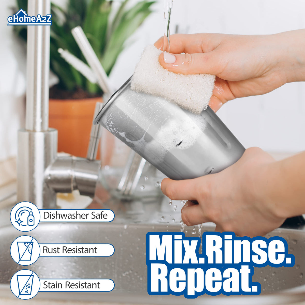 Ehomea2Z Malt Cup (6 Pack) Stainless Steel Ice Cream Milkshake Commercial Grade 30 Oz (6)
