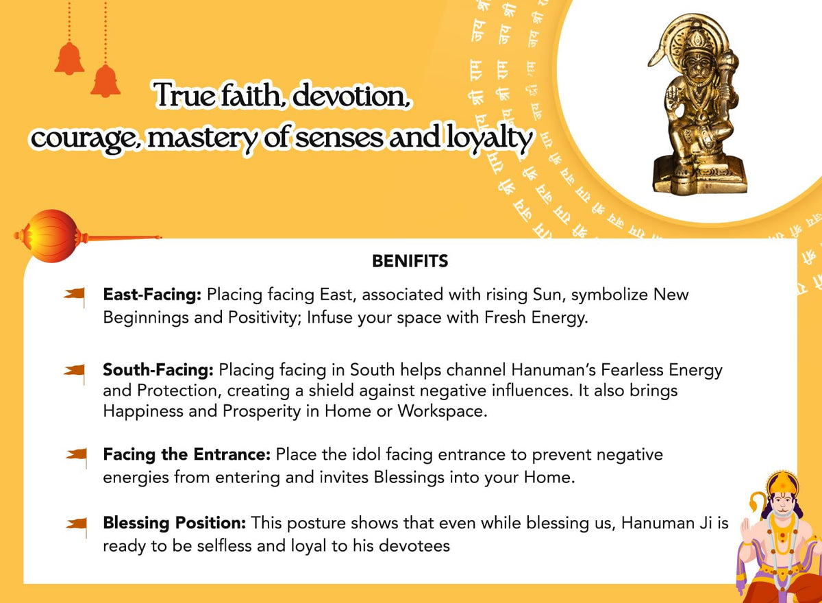 Ekhasa 100% Pure Brass Hanuman Ji Murti (Size: 8.4 cm) | Lord Hanuman Idol for Home Puja, Office Desk and Car Dashboard | Balaji