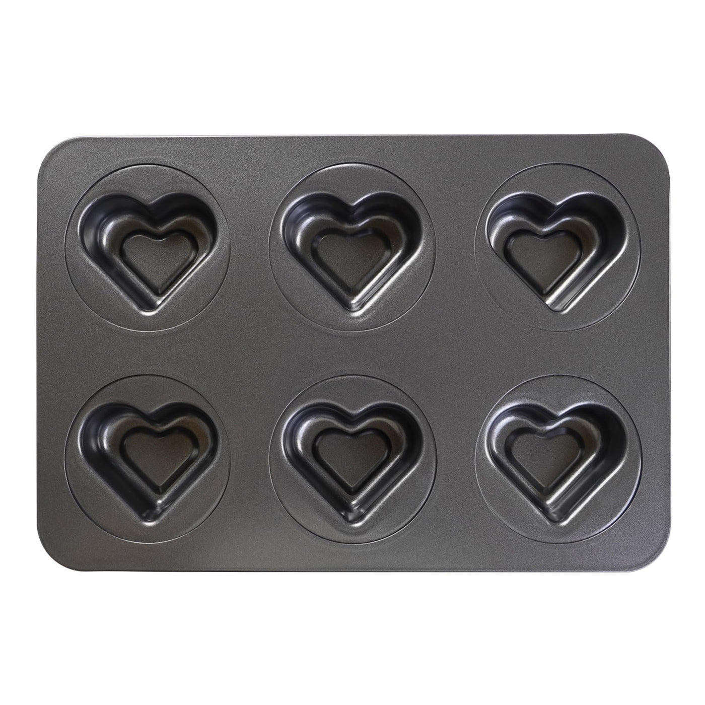 Elesinsoz 6 Cup Valentines Heart Shape Muffin Cupcake Pan Nonstick Cheesecake Brownie Cookie Cake Baking Tin Tray Mold, For Moth