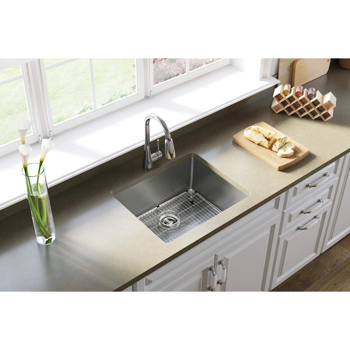 • Q: Is there a basin rack included with the sink? A: Yes, the Elkay ECTRU21179TC comes with a basin rack to help protect the sink's surface and assist with drying dishes.