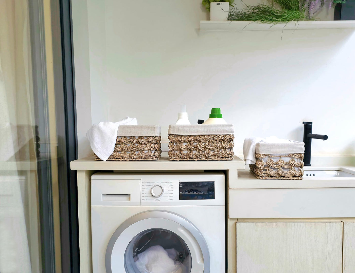 - Q: Are the handles on the baskets functional? A: Yes, the baskets feature hidden handles that blend seamlessly into the wicker structure, providing a comfortable grip for easy transport.