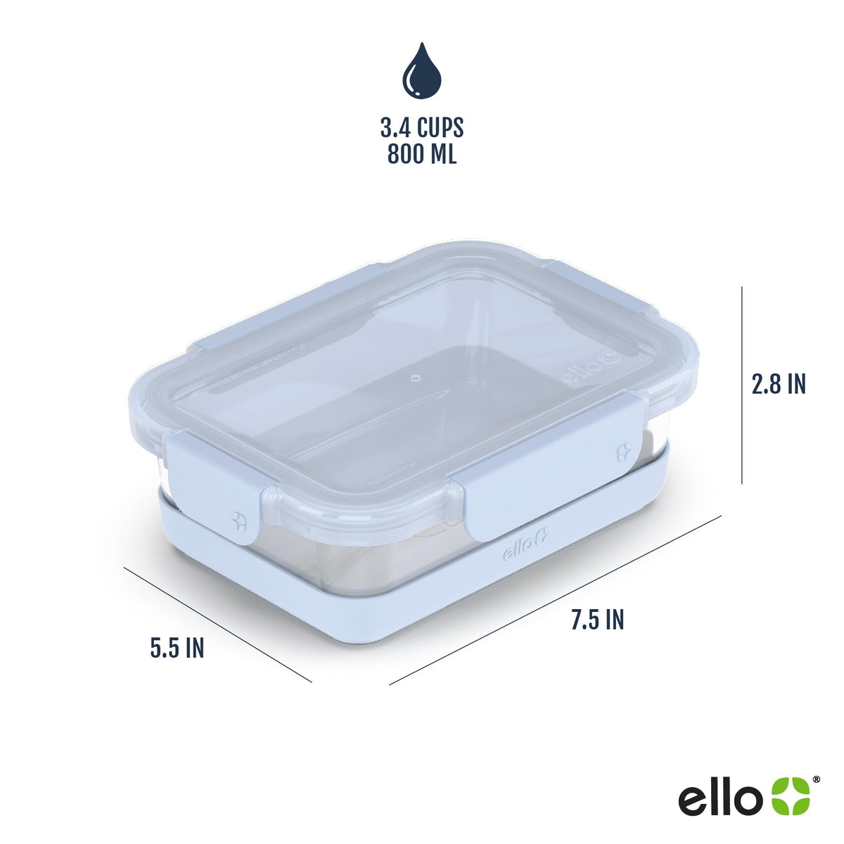 - Q: What are the dimensions of the Ello Duraglass meal prep containers? A: Each container in the Ello Duraglass meal prep set holds 3.4 cups, making them perfect for portioning meals.