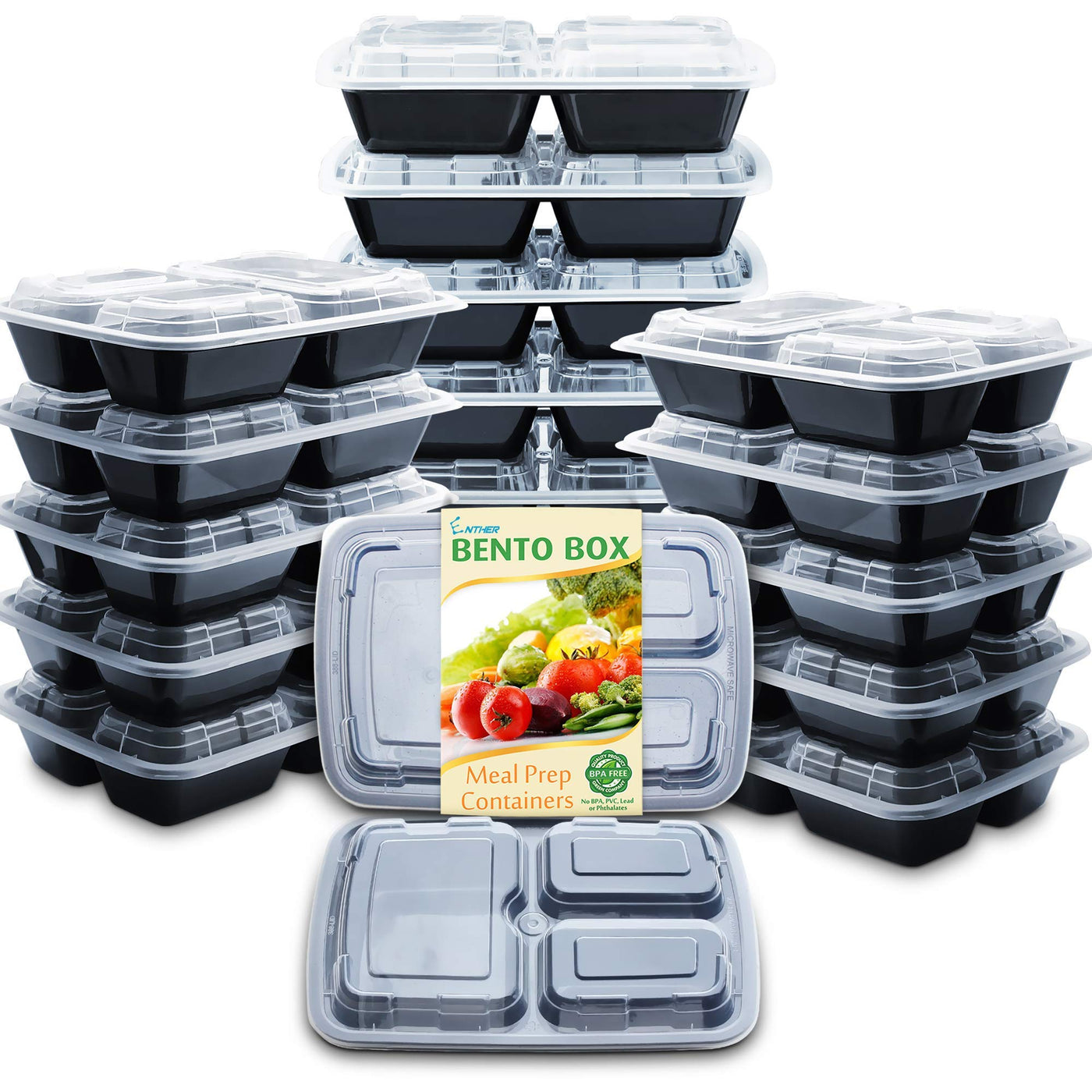 Enther Meal Prep Containers With Lids 20 Pack 3 Compartment Food Storage Bento Lunch Box Bpa Free, Reusable, Microwave/Dishwashe