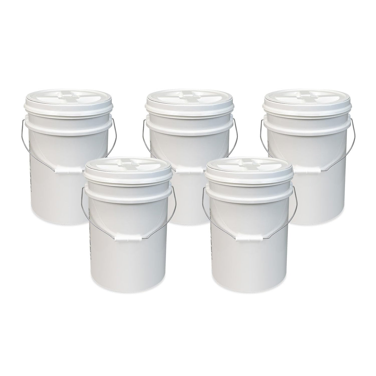 Epackagesupply, 5 Gallon Bucket With Gamma Seal Screw On Airtight Lid, Set Of 5, Food Grade Storage, Premium Hpde Plastic, Bpa F