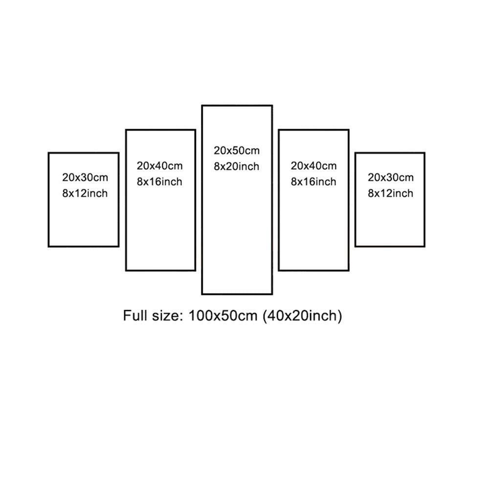 • Q: What are the dimensions of the EPHANY Abstract Ocean Beach Wall Art? A: The EPHANY Abstract Ocean Beach Wall Art consists of five pieces with a total size of 40 inches by 20 inches, including two pieces sized 8 inches by 12 inches, two pieces sized 8 inches by 16 inches, and one piece sized 8 inches by 20 inches.