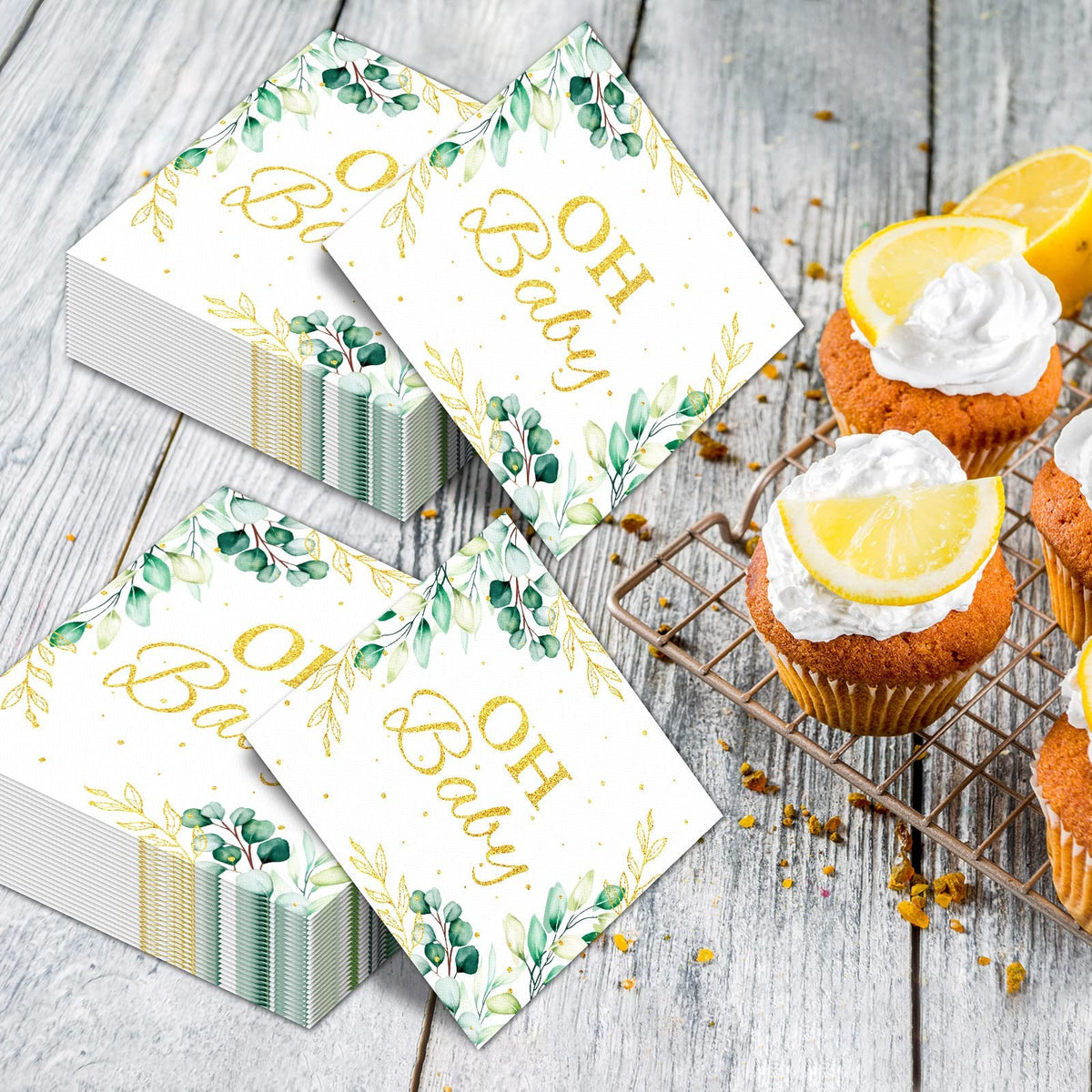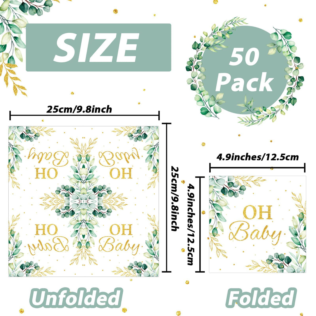 • Q: Are these napkins suitable for a baby shower theme? A: Yes, these napkins feature a beautiful eucalyptus leaf theme, making them perfect for baby shower decorations.