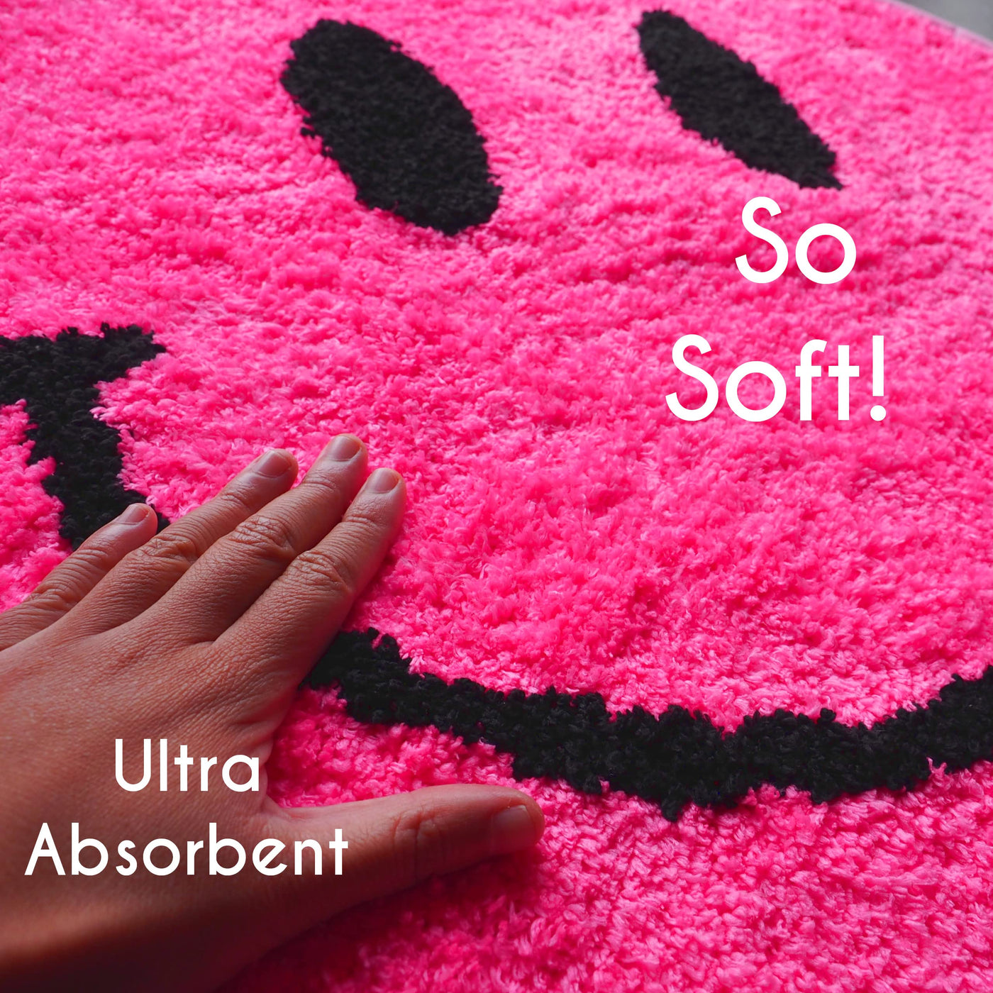 Evovee Hot Pink Bath Mat Rug Funny Happy Cute Bathroom Decor Shower Rugs Retro Funky Bedroom Aesthetic Fun Round Preppy Cool Apa