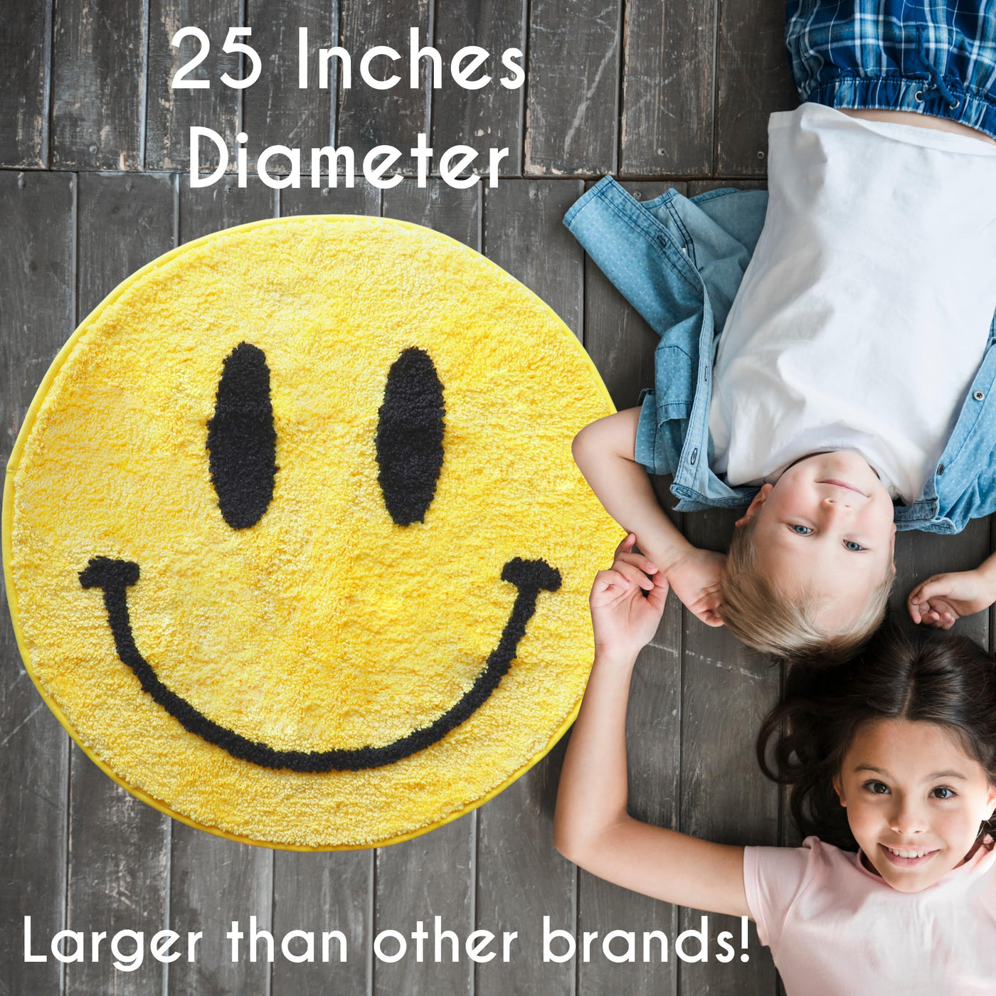 Evovee Yellow Bath Mat Rug Funny Happy Cute Bathroom Decor Shower Rugs Retro Funky Bedroom Aesthetic Fun Round Preppy Cool Apart