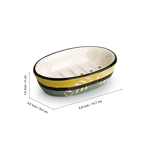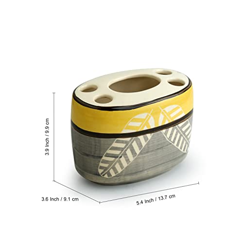 Exclusivelane Leaves Imprinted Ceramic Bathroom Accessories Set Of 3 (Liquid Soap Dispenser, Toothbrush Holder, Tumbler) (El-022