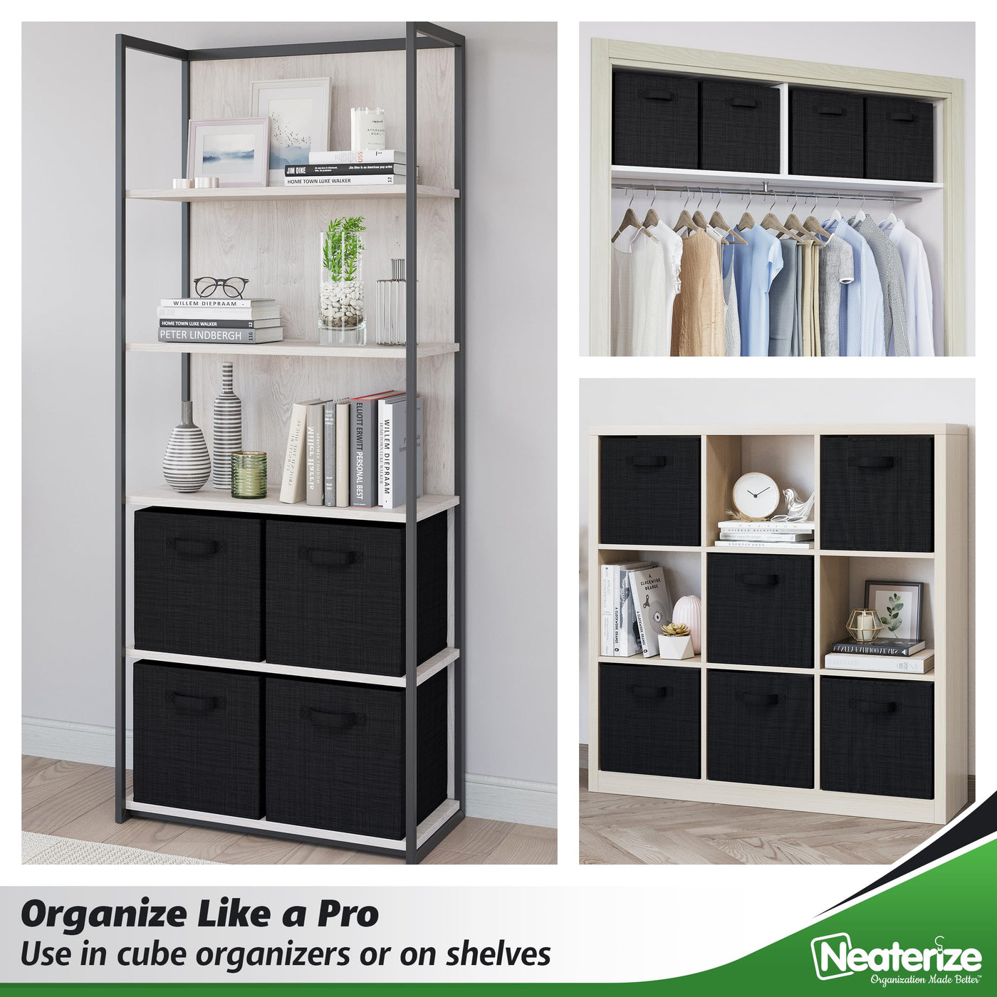 Fabric Storage Cubes For Cube Organizer - 6 Pack Heavy Duty Textured Black Storage Bins - 13 Inch Cube Storage Bin, Use As A Clo
