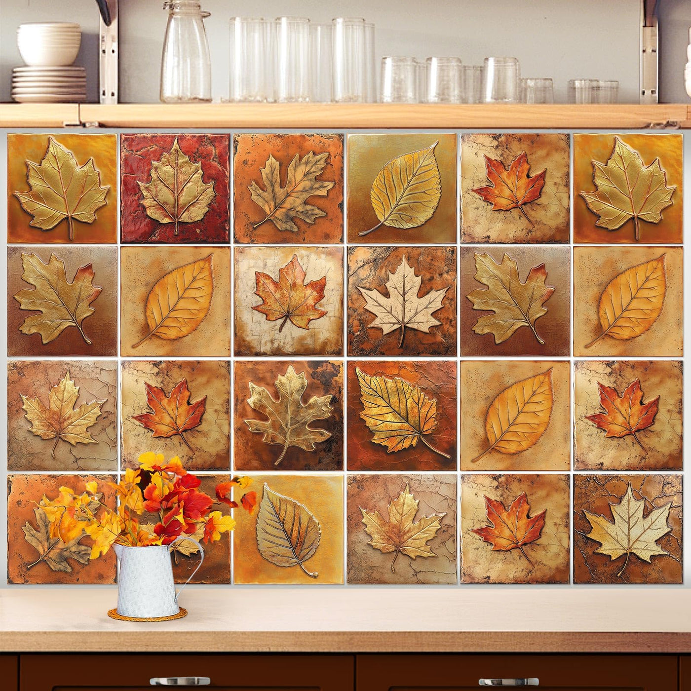 Faccito 24 Pcs Fall Tile Stickers 4X4 Inch Watercolor Thanksgiving Maple Leaves Peel And Stick Removable Self Adhesive Pvc Water
