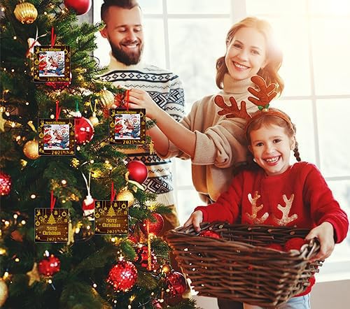 FaCraft Christmas Picture Frame Ornaments 2025 - Merry Keepsake Photo Frame Personalized Custom Picture Ornaments Rustic Family
