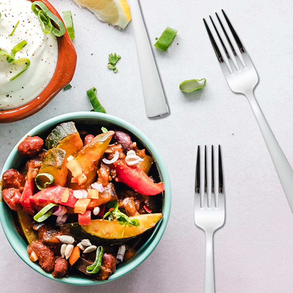 Faderic Dinner Forks Set, Table Forks, Flatware Forks Stainless Steel Mirror Polishing, 8-Inch (Silver, 6Pcs-Square Handle)