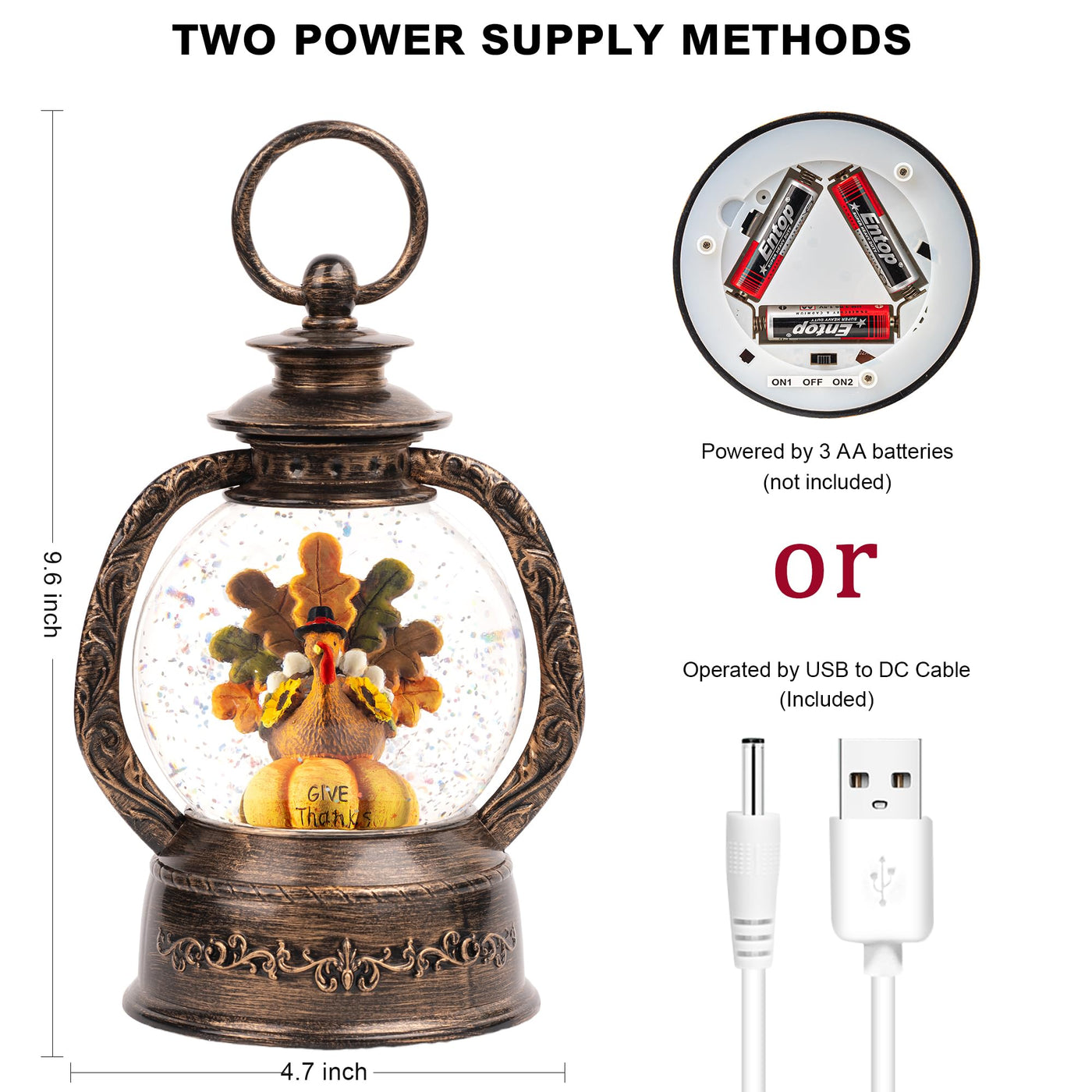 Fall Snow Globe Lantern -Thanksgiving Turkey with Pumpkin Spinning Water Lantern with Swirling Glitter Fall Decorations for Home