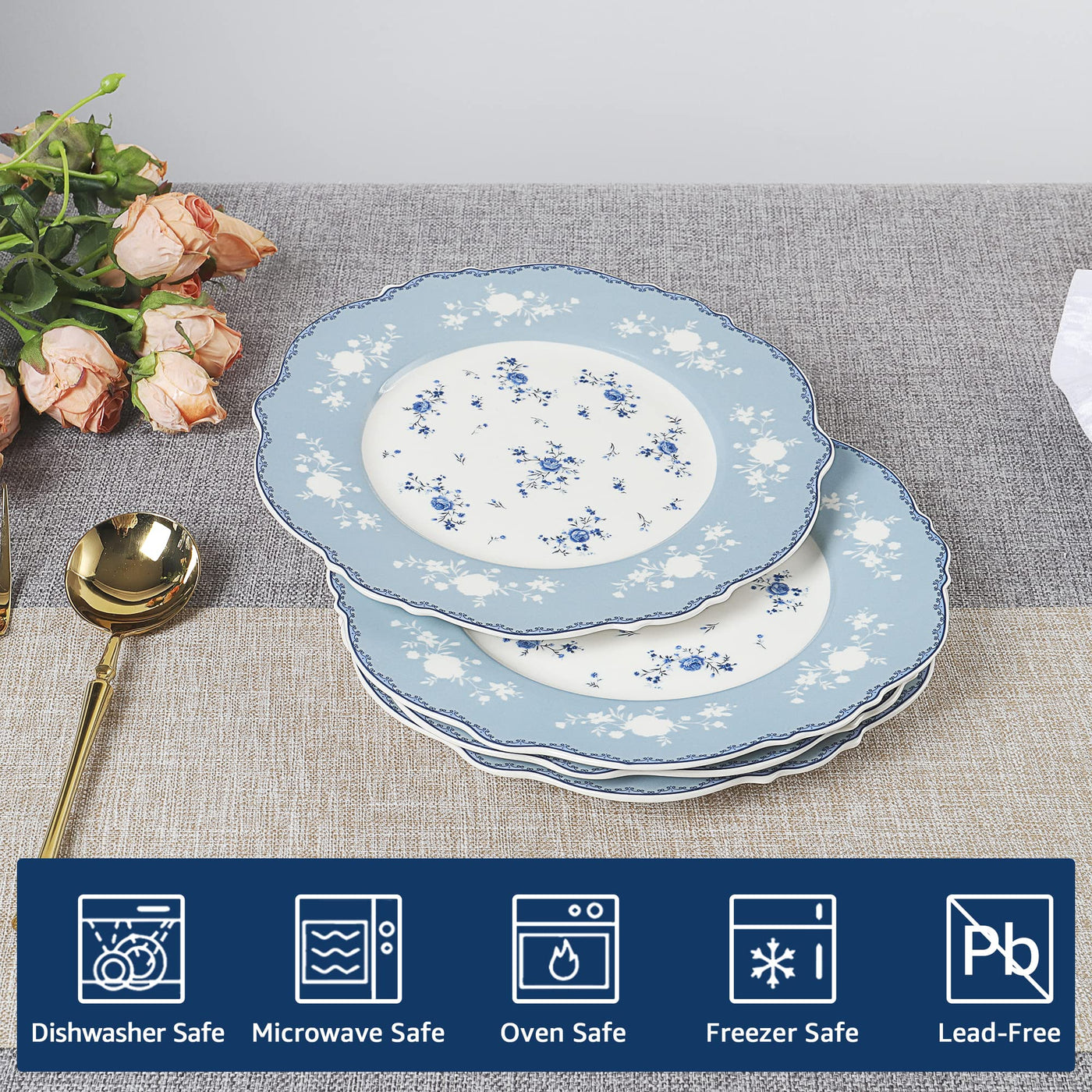- Q: Are these plates safe for microwave and dishwasher use? A: Yes, these plates are made of lead-free porcelain and are both microwave and dishwasher safe for easy reheating and cleaning.
