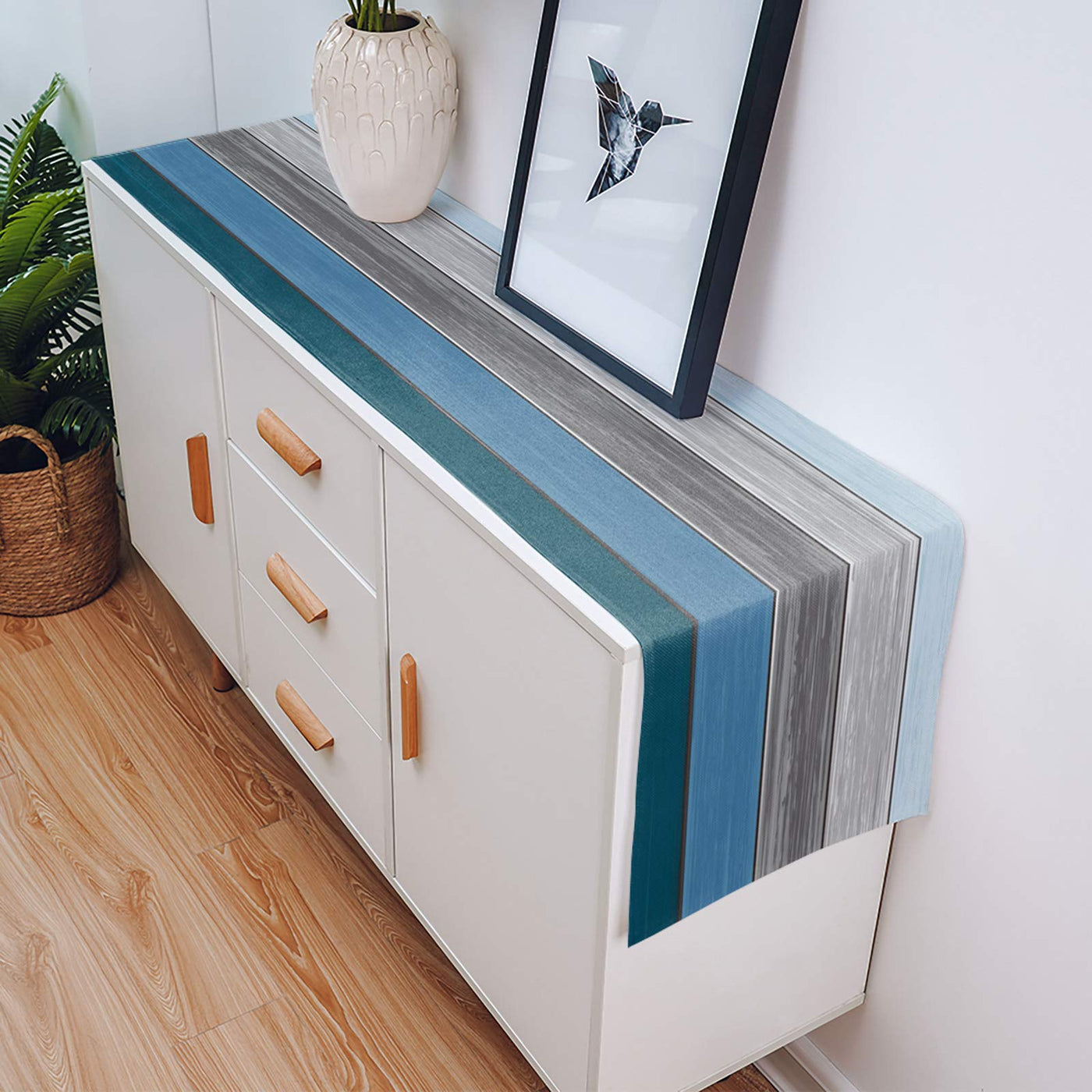 Farmhouse Cotton Linen Table Runner Dresser Scarf Extra Long 108 Inches- Retro Rustic Barn Wood Texture Ombre Blue Gray Ocean Hu