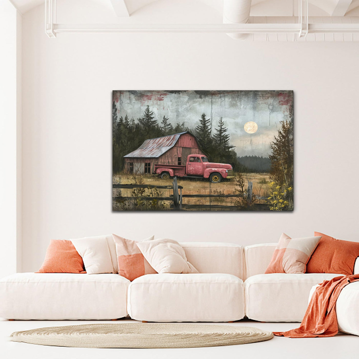 Farmhouse Truck Wall Ar, Old Truck Canvas Prints, Barn Picture Wall Art For Rustic Home Decor, Rustic Landscape Canvas Painting,