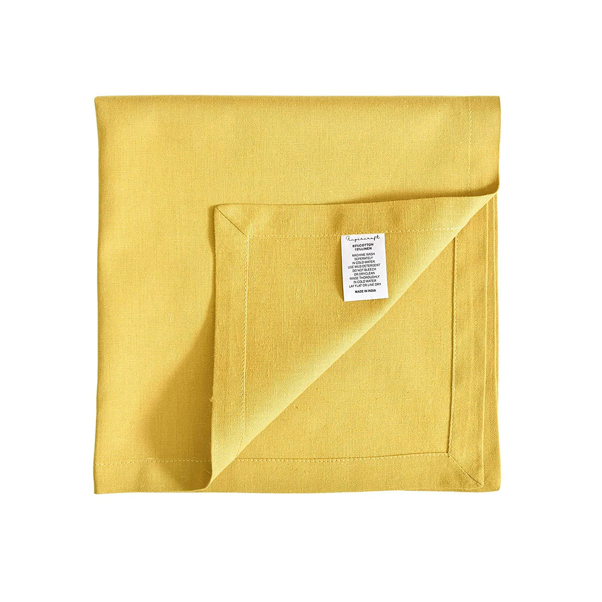 - Q: What material are the Gold Cloth Napkins made from? A: The Gold Cloth Napkins are made from a blend of 85% cotton and 15% linen, providing a natural fiber option that is more absorbent and durable than polyester.