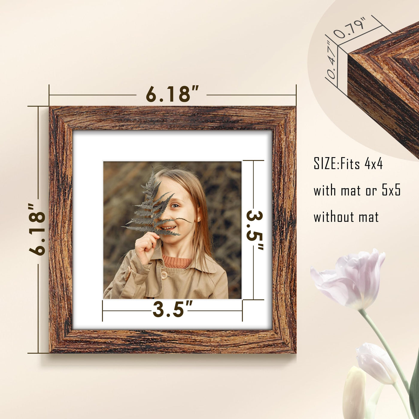 Fisnish 5x5 Picture Frame Sef of 10, Display Pictures 4x4 with Mat or 5 x 5 Without Mat, Square Photo Frame Collage for Wall Gal