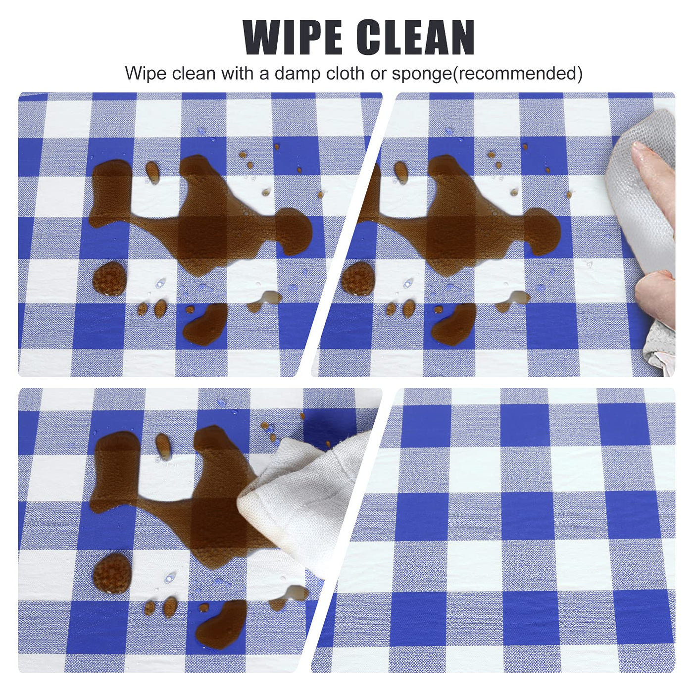 Fitable Blue Checkered Picnic Table Cover Waterproof Vinyl Fitted Table Cover Flannel Backing Outdoor Indoor Tablecloth 30 ''X96