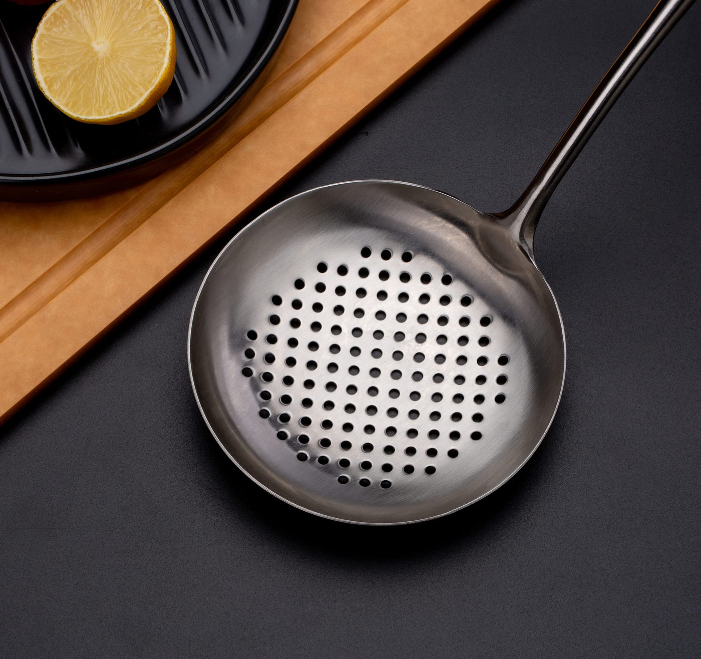 • Q: Can the skimmer spoon be used for serving pasta? A: Yes, the skimmer spoon is ideal for serving pasta and other foods, thanks to its slotted design that allows for easy draining.